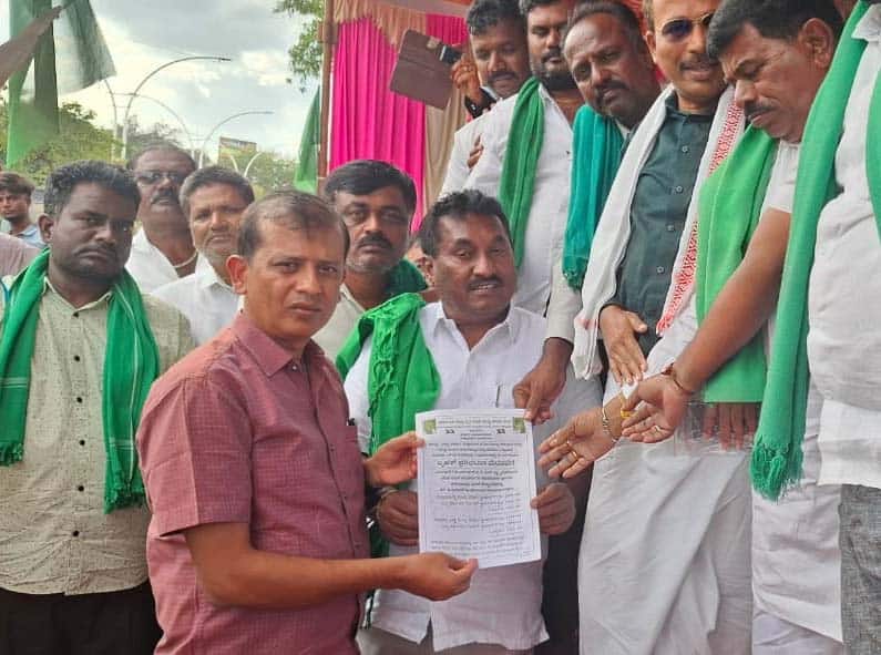 ದಾವಣಗೆರೆಯಲ್ಲಿ ನಡೆದ ರೈತ ಸಂಘದ ಮೂರನೇ ದಿನದ ಧರಣಿ ಸ್ಥಳಕ್ಕೆ ಜಿಲ್ಲಾಧಿಕಾರಿ ಜಿ.ಎಂ.ಗಂಗಾಧರ ಸ್ವಾಮಿ ಭೇಟಿ ನೀಡಿ, ರೈತರ ಮನವಿ ಸ್ವೀಕರಿಸಿದರು.