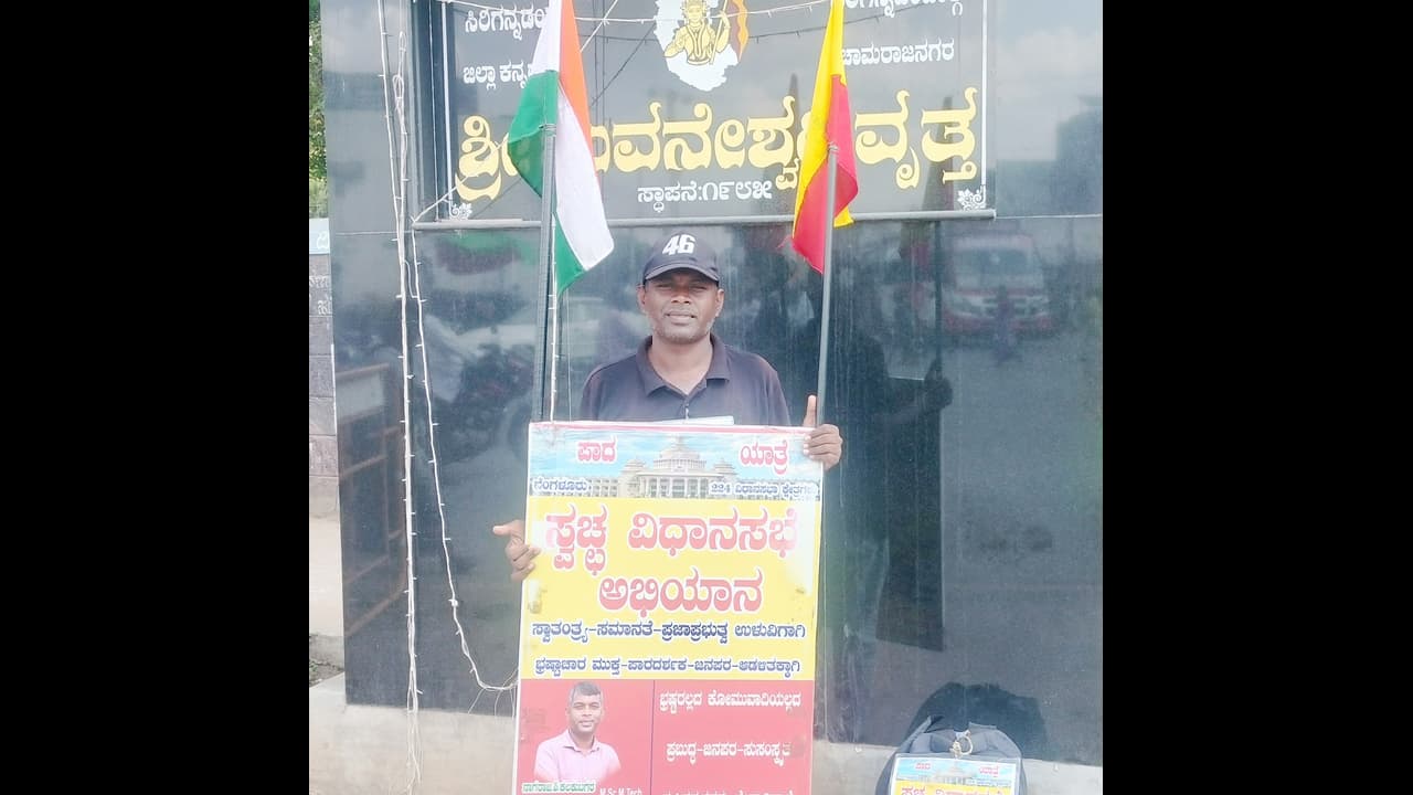 ರಾಜ್ಯಾದ್ಯಂತ ಹಮ್ಮಿಕೊಂಡಿರುವ ಸ್ವಚ್ಛ ವಿಧಾನಸಭೆ ಅಭಿಯಾನದ ಅಂಗವಾಗಿ ಪಾದಯಾತ್ರೆ ಹಮ್ಮಿಕೊಂಡಿದ್ದು ಬುಧವಾರ ಚಾಮರಾಜನಗರಕ್ಕೆ ಆಗಮಿಸಿ ಭುವನೇಶ್ವರಿ ವೃತ್ತದಲ್ಲಿ ಮಾತನಾಡಿದರು.ನಾನು ಪ್ರಬುದ್ಧ ರಾಜಕಾರಣಕ್ಕಾಗಿ, ಮತದಾರರಲ್ಲಿ ಜಾಗೃತಿ ಮೂಡಿಸುವ ಸಲುವಾಗಿ ಹೆಚ್ಚುತ್ತಿರುವ ಅಪರಾಧಗಳನ್ನು ಕಡಿಮೆ ಮಾಡುವು ಸಲುವಾಗಿ ಫೆ. ೧೬ ರಂದು ಬೆಂಗಳೂರಿನಿಂದ ಪಾದಯಾತ್ರೆ ಹಮ್ಮಿಕೊಂಡಿದ್ದೇನೆ ಈಗಾಗಲೇ 4 ಜಿಲ್ಲೆಗಳನ್ನು ಪೂರ್ಣಗೊಳಿಸಿ, ಇದು ೫ನೇ ಜಿಲ್ಲೆ, ಇಲ್ಲಿಂದ ಮಂಡ್ಯ, ಮೈಸೂರು, ಕೊಡಗು ಜಿಲ್ಲೆ ಸೇರಿದಂತೆ ೩೧ ಜಿಲ್ಲೆಗಳಲ್ಲೂ ಪಾದಯಾತ್ರೆ ಮಾಡುತ್ತೇನೆ ಎಂದರು.ಭ್ರಷ್ಟರು, ಕೋಮುವಾದಿಗಳು ಕುಟುಂಬ ರಾಜಕಾರಣ ಮಾಡುವವರನ್ನು ಅಧಿಕಾರದಿಂದ ದೂರವಿಡಿ. ಜನಪರ ಕಾಳಜಿ ಇರುವ ಪ್ರಬುದ್ಧರನ್ನು ಮುಂದಿನ ವಿಧಾನಸಭೆ ಮತ್ತು ಲೋಕಸಭೆ ಚುನಾವಣೆಗಳಲ್ಲಿ ಆಯ್ಕೆ ಮಾಡಿ, ಹಣ, ಹೆಂಡಕ್ಕೆ ಮಾರುಹೋಗಬೇಡಿ, ೨೦೨೮ಕ್ಕಾದರೂ ಪ್ರಬುದ್ದ ರಾಜಕಾರಣಿಗಳನ್ನು ಆಯ್ಕೆ ಮಾಡಿ ಸ್ವಚ್ಛ ವಿಧಾನಸಭೆ ಮಾಡಿ ಎಂದು ಮನವಿ ಮಾಡಿದರು. ಜನರಲ್ಲಿ ಜಾಗೃತಿ ಮೂಡಿಸುವ ಉದ್ದೇಶದಿಂದ ಪಾದಯಾತ್ರೆ ನಡೆಸುತ್ತಿದ್ದೇನೆ ಎಂದರು. ಆ.೧೫ರ ವೇಳೆಗೆ ಮೊದಲ ಹಂತದ ಜಿಲ್ಲಾ ಕೇಂದ್ರದ ಪಾದಯಾತ್ರೆ ಮುಕ್ತಾಯಗೊಳ್ಳಲಿದ್ದು, 2ನೇ ಹಂತದ ಪಾದಯಾತ್ರೆಯನ್ನು ವಿಧಾನಸಭಾ ಕ್ಷೇತ್ರಗಳಲ್ಲಿ ನಡೆಸುವುದಾಗಿ ತಿಳಿಸಿದರು.