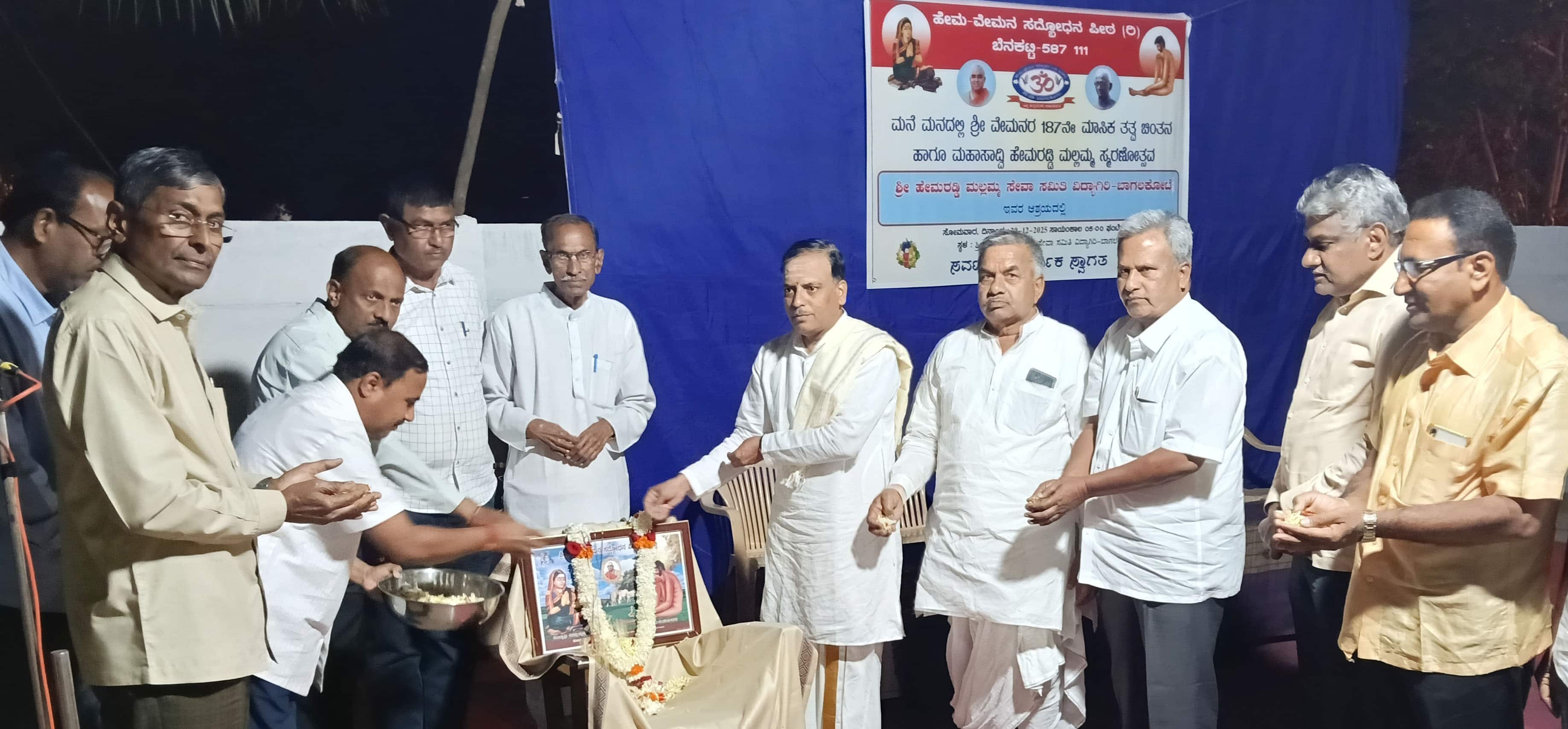 ತಮ್ಮಣ್ಣಪ್ಪ ಅರಳಿಕಟ್ಟಿ ಅತಿಥಿಯಾಗಿದ್ದರು. ಸದ್ಬೋಧನ ಪೀಠದ ನಿರ್ದೇಶಕ ಶಿವಾನಂದ ಮೆಳ್ಳಿಗೇರಿ, ಹೇಮರಡ್ಡಿ ಮಲ್ಲಮ್ಮ ಸೇವಾ ಸಮಿತಿ ಉಪಾಧ್ಯಕ್ಷ ಮಲ್ಲಿಕಾರ್ಜುನ ಪಾಟೀಲ, ಕಾರ್ಯದರ್ಶಿ ಈಶ್ವರ ಕೋನಪ್ಪನವರ, ನಿರ್ದೇಶಕರಾದ ಎಸ್.ಎಲ್.ಮೇಟಿ, ರಾಜೇಂದ್ರ ದ್ಯಾವನ್ನವರ, ಸುಜಾತಾ ಪಾಟೀಲ ಹಾಗೂ ಸಂಗಣ್ಣ ಕೋಮಾರ ಇದ್ದರು.ಬೆನಕಟ್ಟಿಯ ಹೇಮರಡ್ಡಿ ಭಜನಾ ಮಂಡಳಿಯವರು ವೇಮನ ವಚನ ಪಠಿಸಿದರು. ಮಹೇಶ ವಾಸನದ ಸ್ವಾಗತಿಸಿದರು. ಎಚ್.ಜಿ. ಹುದ್ದಾರ ನಿರೂಪಿಸಿದರು.