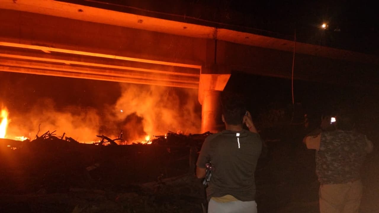 ಯಲ್ಲಾಪುರ: ಯಲ್ಲಾಪುರ- ಶಿರಸಿ ರಸ್ತೆಯ ನಡುವಿನ ಬೇಡ್ತಿ ಸೇತುವೆಯ ಬಳಿ ಮಳೆಗಾಲದ ನೀರಿನ ರಭಸಕ್ಕೆ ಸೇತುವೆಯ ಕೆಳಭಾಗದ ಪಿಲ್ಲರ್ಗಳಿಗೆ ತೇಲಿಬಂದ ಜಲಾವು ಸೇರಿದಂತೆ ಒಣದಿಂಬೆಗಳು ನಿಂತು ರಾಶಿಯಾಗಿದ್ದ ಕಟ್ಟಿಗೆಗೆ ಜೂ. ೧೩ರಂದು ರಾತ್ರಿ ಬೆಂಕಿಬಿದ್ದು, ಧಗಧಗ ಹೊತ್ತಿ ಉರಿದಿದೆ.
