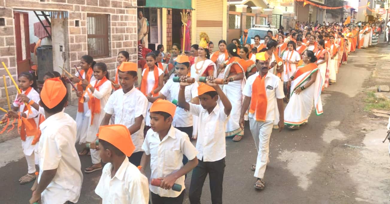 ನಗರದಲ್ಲಿ ಶನಿವಾರ ಹಮ್ಮಿಕೊಂಡಿದ್ದ ಹಿಂದೂ ಸಮಾವೇಶದ ನಿಮಿತ್ತ ನಡೆದ ಶೋಭಾಯಾತ್ರೆಯಲ್ಲಿ ಹತ್ತಾರು ಜಾನಪದ ವಾದ್ಯಗಳ ಸಂಭ್ರಮ ಹಾಗೂ ದೈವ ಮಂಡಳಿಗಳು ಮೆರವಣಿಗೆಗೆ ಮೆರಗು ನೀಡಿತು.ವೈಭವ ಚಿತ್ರಮಂದಿರದಿಂದ ಹೊರಟು ಸೋಮವಾರ ಪೇಟೆ, ಮಂಗಳವಾರ ಪೇಟೆ ಮೂಲಕ ಕಾಡಸಿದ್ಧೇಶ್ವರ ದೇವಾಲಯ ಮುಂಭಾಗದ ಕುಸ್ತಿ ಮೈದಾನದಲ್ಲಿ ಜರುಗುವ ಸಮಾವೇಶ ನಡೆಯುವ ಸ್ಥಳಕ್ಕೆ ಆಗಮಿಸಿತು. ನಾಡದೇವಿ, ಭಗವದ್ಗೀತೆ, ಸ್ವಾಮಿ ವಿವೇಕಾನಂದ, ಸುಭಾಷಚಂದ್ರ ಬೋಸ್, ಭಗತ್ ಸಿಂಗ್, ಝಾನ್ಸಿರಾಣಿ ಲಕ್ಷ್ಮೀಬಾಯಿ ಹೀಗೆ ಅನೇಕ ಚಿತ್ರಗಳ ಮೆರವಣಿಗೆ ಗಮನ ಸೆಳೆಯಿತು.