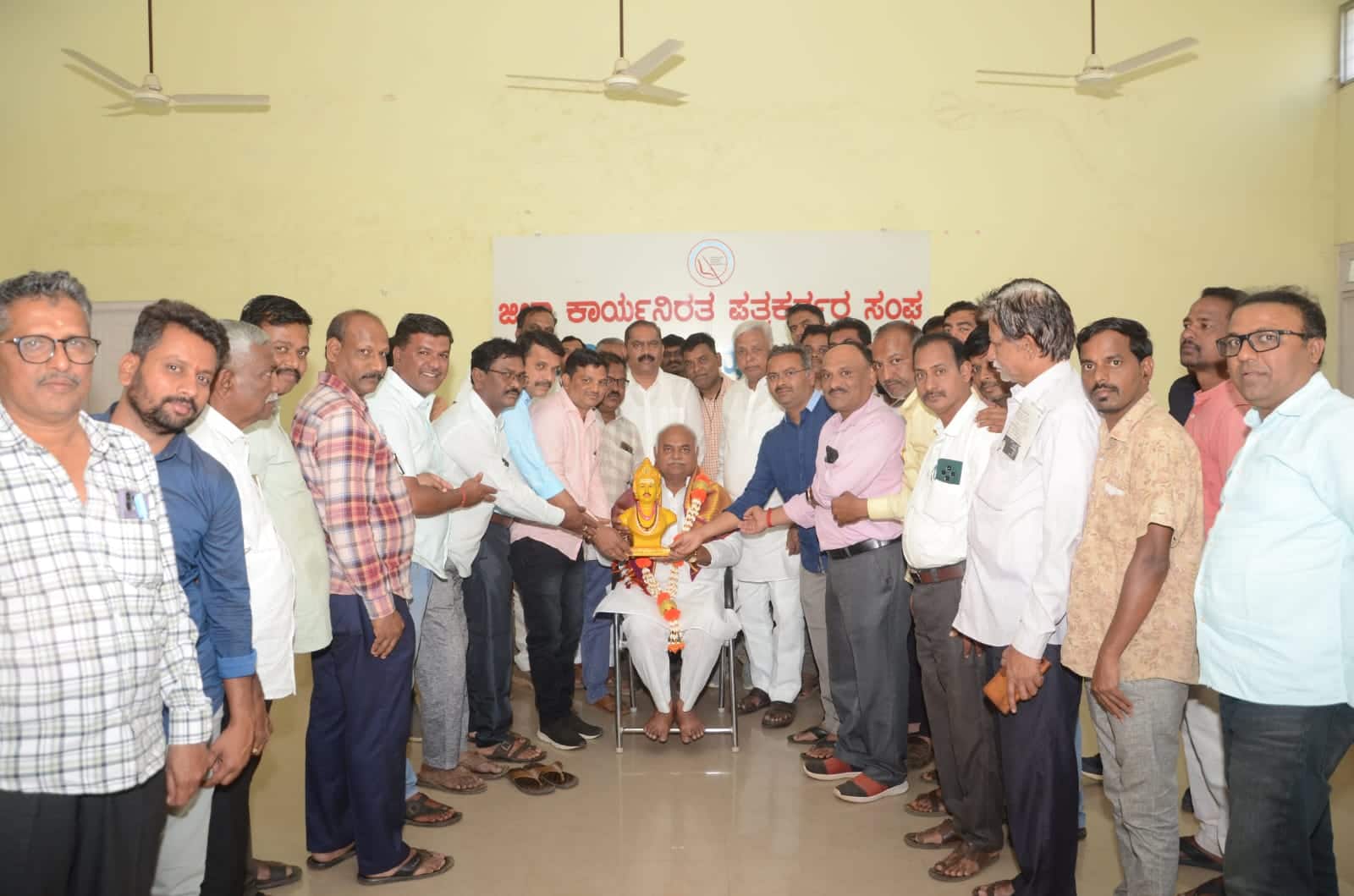 ಹಾವೇರಿ ನಗರದ ಪತ್ರಿಕಾ ಭವನ ಕಟ್ಟಡಕ್ಕೆ ಮಂಗಳವಾರ ಭೇಟಿ ನೀಡಿ ಪರಿಶೀಲನೆ ನಡೆಸಿದ ಜಿಲ್ಲಾ ಉಸ್ತುವಾರಿ ಸಚಿವ ಶಿವಾನಂದ ಪಾಟೀಲರನ್ನು ಜಿಲ್ಲಾ ಕಾರ್ಯನಿರತ ಪತ್ರಕರ್ತರ ಸಂಘದಿಂದ ಸನ್ಮಾನಿಸಲಾಯಿತು.