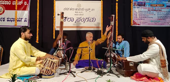 ಶಿರಸಿ: ತಾಲೂಕಿನ ಮೂಲೆಮನೆ ಕಣಗಲಮುರುಡು ಶ್ರೀ ಲಕ್ಷ್ಮೀನರಸಿಂಹ ದೇವಸ್ಥಾನದ ನೂತನ ಸಭಾಭವನದಲ್ಲಿ ಸ್ಥಳೀಯ ವತನ ಕಲಾಕುಸುಮ ಟ್ರಸ್ಟ್ನವರು ಆಯೋಜಿಸಿದ್ದ ಕಲಾ ಸಂಗಮ ವಿಶೇಷ ಸಂಗೀತ ಕಾರ್ಯಕ್ರಮದಲ್ಲಿ ಗಾಯನ-ವಾದನಗಳ ಸಮ್ಮಿಶ್ರಣದೊಂದಿಗೆ ಸೇರಿದ ಕಿಕ್ಕಿರಿದ ಸಂಗೀತಾಭಿಮಾನಿಗಳ ಮನಸೊರೆಗೊಳ್ಳುವಲ್ಲಿ ಯಶಸ್ವಿಯಾಯಿತು.
