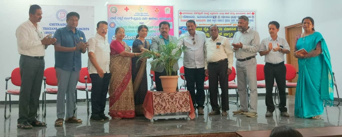 ಡಾ.ಆರ್.ಗಂಗಾಧರ್ ಮಾತನಾಡಿ, ಆರೋಗ್ಯ ಎಂದರೆ ಬರಿ ಚಿಕಿತ್ಸೆ ಪಡೆಯುವುದಲ್ಲ. ಅದು ದೇಹ, ಮನಸ್ಸು ಮತ್ತು ಸಾಮಾಜಿಕ ವಾತಾವರಣವನ್ನು ತಿಳಿಗೊಳಿಸುವ ಒಂದು ವ್ಯವಸ್ಥೆ. ಆರೋಗ್ಯವೇ ಸಂಪತ್ತು. ಇಂತಹ ಸಂಪತ್ತನ್ನು ಹೆಚ್ಚಿಸಿಕೊಳ್ಳುವ ಮೂಲಕ ಸಮಾಜದ ಮತ್ತು ದೇಶದ ಆರೋಗ್ಯಕರ ಬೆಳವಣಿಗೆಯಲ್ಲಿ ನಾವೆಲ್ಲಾ ಭಾಗಿಯಾಗಬೇಕು ಎಂದರು. ಸದರಿ ಕಾರ್ಯಕ್ರಮದಲ್ಲಿ ಸುಮಾರು 350 ವಿದ್ಯಾರ್ಥಿಗಳು ಭಾಗವಹಿಸಿದ್ದರು.ಈ ಸಂದರ್ಭದಲ್ಲಿ ರಾಜ್ಯ ರೆಡ್ ಕ್ರಾಸ್ ನಿರ್ವಹಣಾ ಸಂಸ್ಥೆಯ ನಿರ್ದೇಶಕ ಎo.ಜಿ.ಅನಂತರೆಡ್ಡಿ, ಭಾರತೀಯ ರೆಡ್ ಕ್ರಾಸ್ ಸೊಸೈಟಿಯ ಹೆಚ್.ಎಸ್.ಸುಂದರರಾಜ್, ಚಿತ್ರದುರ್ಗ ಜಿಲ್ಲಾ ರೆಡ್ ಕ್ರಾಸ್ ಸಂಸ್ಥೆಯ ಕಾರ್ಯದರ್ಶಿ ಮಜರುಲ್ಲಾ, ಎಂ.ಎಸ್.ರಾಘವೇಂದ್ರ, ಶಶಿಕಲಾ ರವಿಶಂಕರ್ ಮತ್ತು ಕಾಲೇಜಿನ ಬೋಧಕ ಹಾಗೂ ಬೋಧಕೇತರ ಸಿಬ್ಬಂದಿ, ವಿದ್ಯಾರ್ಥಿಗಳು ಹಾಜರಿದ್ದರು.