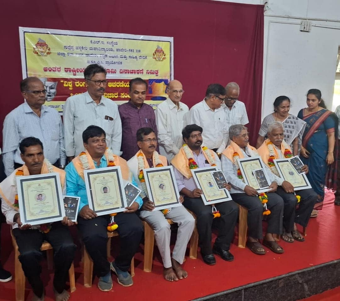 ಹಾವೇರಿ: ಇಂದಿನ ಯಾಂತ್ರಿಕ ಬದುಕಿನಲ್ಲಿ ಯುವಜನಾಂಗದಲ್ಲಿ ಸೃಜನಶೀಲತೆಯನ್ನು ಹುಟ್ಟು ಹಾಕಲು ರಂಗಭೂಮಿಯಿಂದ ಸಾಧ್ಯ. ಪ್ರಜಾಪ್ರಭುತ್ವದ ಎಲ್ಲ ಮೌಲ್ಯಗಳನ್ನು ಸದಾಕಾಲ ಜನರಿಗೆ ಮುಟ್ಟಿಸುವ ಏಕೈಕ ಬಲಿಷ್ಠ ಮಾಧ್ಯಮ ರಂಗಭೂಮಿ ಎಂದು ಹಾವೇರಿ ವಿಶ್ವ ವಿದ್ಯಾಲಯದ ಆಡಳಿತ ಕುಲಸಚಿವ ಡಾ.ಎಸ್.ಟಿ. ಬಾಗಲಕೋಟಿ ನುಡಿದರು. ಇಲ್ಲಿಯ ಗುದ್ಲೆಪ್ಪ ಹಳ್ಳಿಕೇರಿ ಮಹಾವಿದ್ಯಾಲಯ, ಜಿಲ್ಲಾ ಕಲಾಬಳಗ ಹಾಗೂ ಸಾಹಿತ್ಯ ವೇದಿಕೆಯ ಐಕ್ಯೂಎಸಿ ವಿಭಾಗದಿಂದ ಏರ್ಪಡಿಸಿದ್ದ ವಿಶ್ವರಂಗಭೂಮಿ ದಿನಾಚರಣೆ ಅಂಗವಾಗಿ ಒಂದು ದಿನದ ವಿಚಾರ ಸಂಕಿರಣ ಮತ್ತು ಸಾಧಕರಿಗೆ ಸನ್ಮಾನ ಕಾರ್ಯಕ್ರಮವನ್ನು ಉದ್ಘಾಟಿಸಿ ಅವರು ಮಾತನಾಡಿದರು. ಕೆ.ಎಲ್.ಇ ಆಡಳಿತ ಮಂಡಳಿ ನಿರ್ದೇಶಕ ಎಂ.ಸಿ. ಕೊಳ್ಳಿ ಅಧ್ಯಕ್ಷತೆಯನ್ನು ವಹಿಸಿ, ರಂಗಭೂಮಿಯು ಸದಾಕಾಲ ಒಳ್ಳೆಯ ವಿಚಾರಗಳನ್ನು, ದೇಶಪ್ರೇಮ, ಜೀವನ ಪ್ರೀತಿ ಗಡಿಮೀರಿದ ಮೌಲ್ಯಗಳನ್ನು ಹೇಳುತ್ತ ಬಂದಿದೆ. ರಂಗಭೂಮಿ ಜೀವನ ಪಾಠಶಾಲೆ ಎಂದರು. ಜಿಲ್ಲಾ ಕನ್ನಡ ಸಾಹಿತ್ಯ ಪರಿಷತ್ತಿನ ಅಧ್ಯಕ್ಷ ಲಿಂಗಯ್ಯ ಹಿರೇಮಠ ಮಾತನಾಡಿ, ರಂಗಭೂಮಿ ಆಸಕ್ತಿ ಕಡಿಮೆಯಾಗುತ್ತಿರುವುದಕ್ಕೆ ಸಾಮಾಜಿಕ ಜಾಲ ತಾಣಗಳ ಬಳಕೆ ಕಾರಣವಾಗಿದೆ. ರಂಗ ಚಟುವಟಿಕೆಗಳು ಹೆಚ್ಚಾದರೆ, ಈ ಗೀಳನ್ನು ಕಡಿಮೆ ಮಾಡಬಹುದು ಎಂದರು. ಜಿಲ್ಲಾ ಕಲಾ ಬಳಗದ ಸಂಚಾಲಕ ಕೆ.ಆರ್. ಹಿರೇಮಠ, ಅನೇಕ ನಾಟಕದ ಹೆಸರುಗಳೇ ಕ್ರೌರ್ಯವನ್ನು ಪ್ರತಿಪಾದಿಸುವಂತಿವೆ. ಒಳ್ಳೆಯ ನಾಟಕಗಳು ಕಡಿಮೆಯಾಗುತ್ತಿರುವ ಇಂದಿನ ದಿನಗಳಲ್ಲಿ ಜೀವನಾದರ್ಶ ಬಿಂಬಿಸುವ ನಾಟಕಗಳು ಬೇಕು ಎಂದರು. ಈ ಸಂದರ್ಭದಲ್ಲಿ ರಂಗಭೂಮಿಗೆ ಅನನ್ಯ ಸೇವೆ ಸಲ್ಲಿಸಿದ ನಾಗರಾಜ ಬಣಕಾರ, ಶಂಕರಲಿಂಗಯ್ಯ ಬಸಲಿಂಗಯ್ಯ ಹಿರೇಮಠ, ಈರಣ್ಣ ಬೆಳವಡಿ, ಜಗದೀಶ ಚೌಟಗಿ, ಜಮೀರ ರಿತ್ತಿ, ಎ.ಬಿ. ಗುಡ್ಡಳ್ಳಿ ಅವರನ್ನು ಸನ್ಮಾನಿಸಲಾಯಿತು. ಇಂದಿನ ರಂಗಭೂಮಿ ಎಂಬ ವಿಚಾರ ಸಂಕಿರಣದಲ್ಲಿ ಹಿರಿಯ ಸಾಹಿತಿ ಸತೀಶ ಕುಲಕರ್ಣಿ ರಂಗಭೂಮಿ ಸುತ್ತ ಒಂದ ಅವಲೋಕನ ಎಂಬ ವಿಷಯ ಕುರಿತು ವಿಚಾರಗಳನ್ನು ಮಂಡಿಸಿದರೆ, ನಾಗವೇಣಿ ಪಾಟೀಲ ಮತ್ತು ಸಂಧ್ಯಾ ಕುಲಕರ್ಣಿ ರಂಗಭೂಮಿ ಅಂದು ಇಂದು ಮತ್ತು ಅದರ ಸವಾಲುಗಳು ಕುರಿತು ವಿಚಾರಗಳನ್ನು ಹಂಚಿಕೊಂಡರು. ಶಂಕರ ಸುತಾರ, ಐಕ್ಯೂಎಸಿ ಸಂಯೋಜಕಿ ಪ್ರೊ. ರೂಪಾ ಕೋರೆ, ಸಂಚಾಲಕ ಡಾ. ಶಮಂತಕುಮಾರ ಕೆ.ಎಸ್. ಇದ್ದರು. ಪ್ರಾಚಾರ್ಯ ಎಂ.ಎಂ. ಹೊಳ್ಳಿಯವರ ಪ್ರಾಸ್ತಾವಿಕ ನುಡಿಗಳನ್ನಾಡಿದರು. ಕನ್ನಡ ವಿಭಾಗದ ಮುಖ್ಯಸ್ಥ ಡಾ.ಸಂಜೀವ ಆರ್. ನಾಯಕ್ ಸ್ವಾಗತಿಸಿದರು. ಸಾಹಿತ್ಯ ವೇದಿಕೆಯ ಸಂಚಾಲಕಿ ಪ್ರೊ. ಶ್ರೀದೇವಿ ದೊಡ್ಡಮನಿ ನಡೆಸಿಕೊಟ್ಟರು.