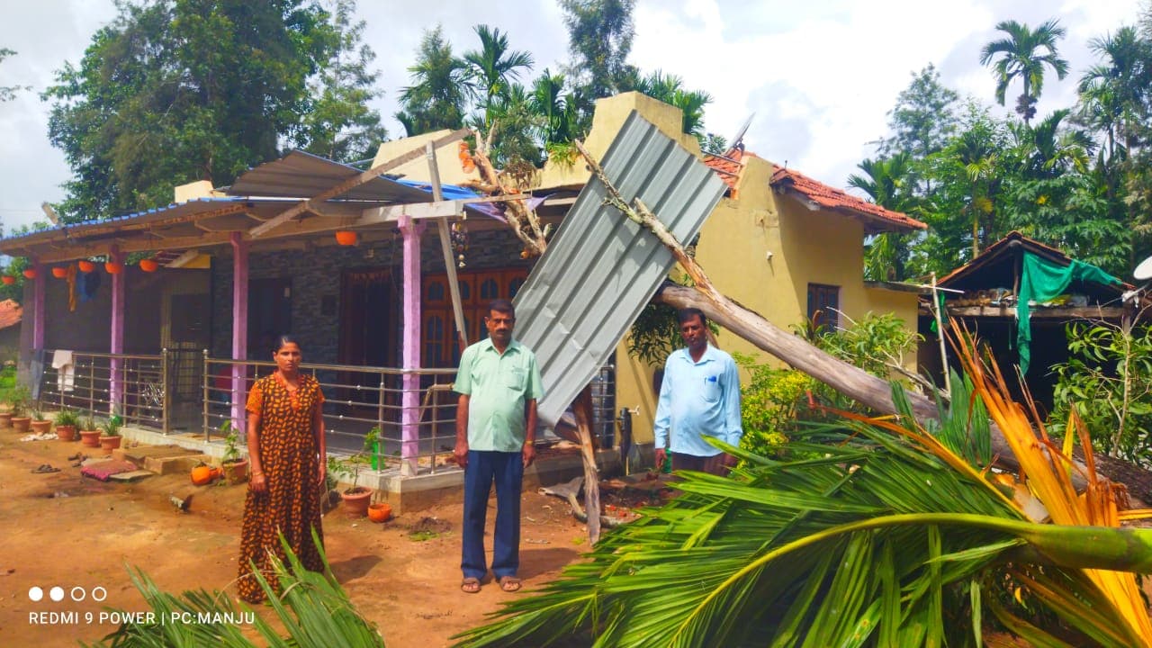 ನರಸಿಂಹರಾಜಪುರ: ತಾಲೂಕಿನ ಕಾನೂರು ಗ್ರಾಮದ ರಾಮನಹಡ್ಲು ಸರೋಜ ಎಂಬುವರ ಮನೆಯ ಮೇಲೆ ಅಕೇಶಿಯಾ ಮರ ಉರುಳಿ ಬಿದ್ದ ಘಟನೆ ಗುರುವಾರ ಸಂಜೆ 5 ಗಂಟೆಗೆ ನಡೆದಿದೆ. ಮನೆಯ ಗೋಡೆ ಬಿರುಕು ಬಿದ್ದಿದೆ. 4 ಪಕಾಸಿ , ಸಿಮೆಂಟು ಕಂಬ ಹಾಳಾಗಿದೆ. ಮೇಲ್ಛಾವಣಿಯ ಕೆಲವು ಶೀಟುಗಳು ಸಹ ಬಿರುಕು ಬಿಟ್ಟಿದೆ. ಸ್ಥಳಕ್ಕೆ ಕಾನೂರು ಗ್ರಾಮ ಪಂಚಾಯಿತಿ ಪಿಡಿಒ ಶ್ರೀನಿವಾಸ್, ಗ್ರಾಮ ಆಡಳಿತಾಧಿಕಾರಿ ಕುಮಾರ ಸ್ವಾಮಿ ಭೇಟಿ ನೀಡಿ ನಷ್ಟದ ಅಂದಾಜು ಪರಿಶೀಲನೆ ಮಾಡಿದರು.