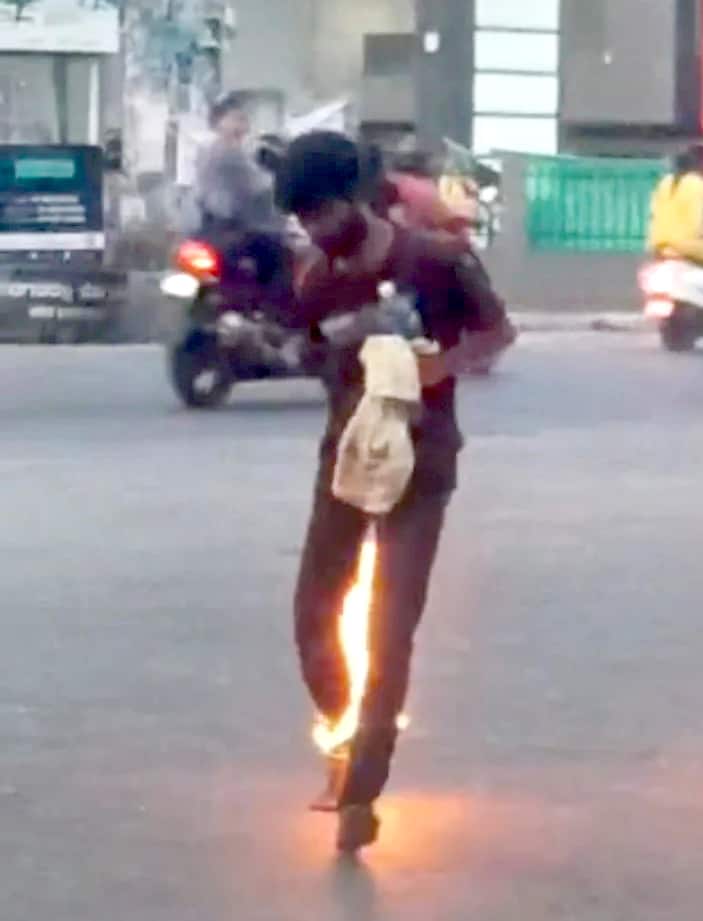 ನಂತರ ತನ್ನು ಪ್ಯಾಂಟ್ ಮೇಲೆ ಪೆಟ್ರೋಲ್ ಸುರಿದು ಬೆಂಕಿ ಹಚ್ಚಿಕೊಂಡ, ಬೆಂಕಿ ಸುಡಲಾರಂಭಿಸಿದಾಗ ರಸ್ತೆ ಪಕ್ಕಕ್ಕೆ ಓಡಿ ಬಂದು ಬೆಂಕಿ ನಂದಿಸುವಂತೆ ಕೂಗಿಕೊಂಡ. ನಂತರ ಸ್ಥಳದಲ್ಲಿದ್ದ ಪೊಲೀಸರು ಆತನನ್ನು ವಶಕ್ಕೆ ಪಡೆದುಕೊಂಡು ಮನವೊಲಿಸಿ ಗದಗಕ್ಕೆ ಕಳುಹಿಸುವ ವ್ಯವಸ್ಥೆ ಮಾಡಿದರು.