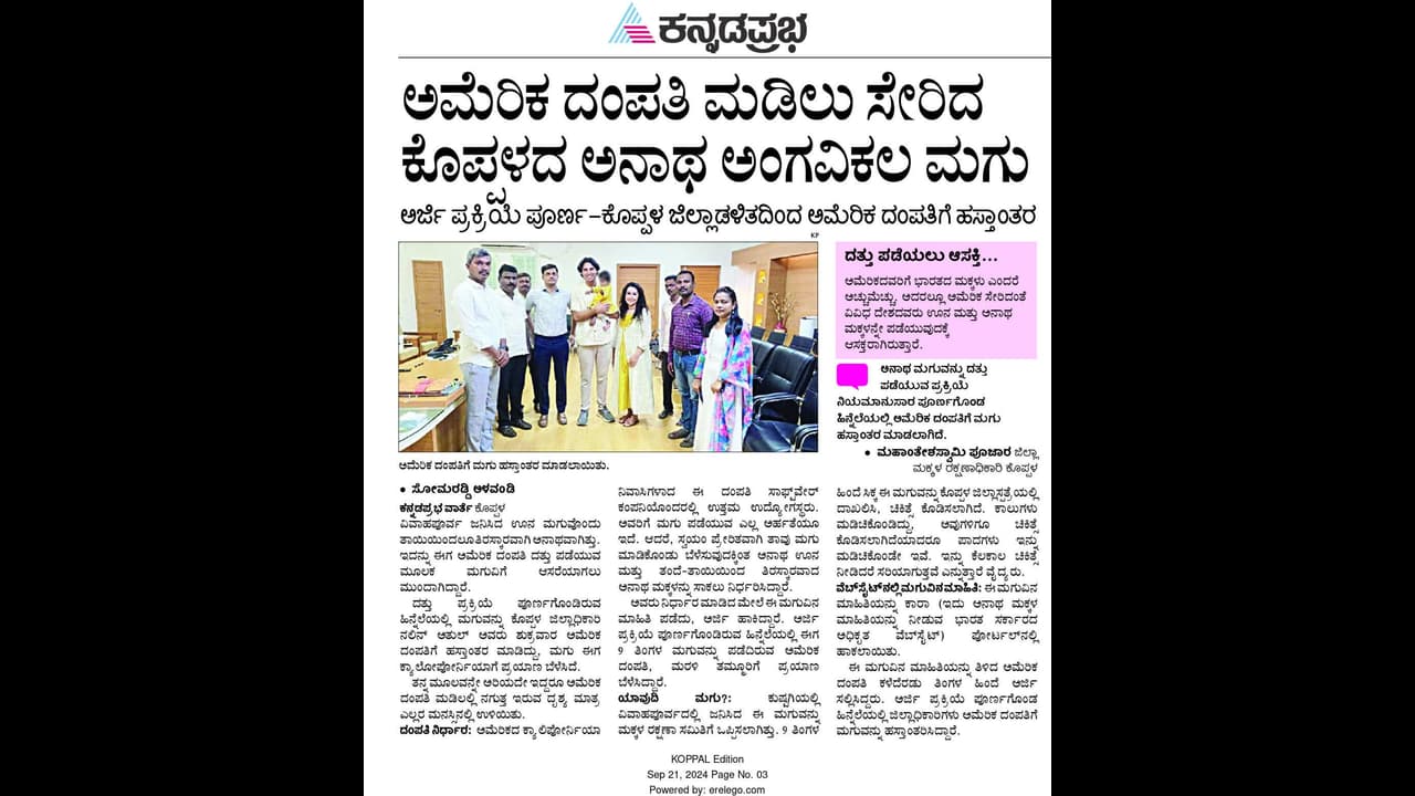 ಅನಾಥ ಊನ ಮಗವೊಂದು ಅಮೆರಿಕ ದಂಪತಿ ಮಡಿಲು ಸೇರಿದರೆ, ಡಿಜಿಟಲ್ ಅರೆಸ್ಟ್ ಎನ್ನುವ ಕಬಂಧ ಬಾಹು ಕೊಪ್ಪಳಕ್ಕೂ ಚಾಚಿ, ಯುವಕನೋರ್ವ ಬಳಲಿದ್ದ. ವೈದ್ಯ ಸೀಟು ಸಿಕ್ಕರೂ ಶುಲ್ಕ ಪಾವತಿಸಲು ಆಗದವನಿಗೆ ಹರಿದು ಬಂದ ನೆರವು. ಮೂರು ಹೆಣ್ಣು ಹೆತ್ತಳೆಂದು ಗಂಡನ ಮನೆಯವರ ಕಿರುಕುಳಕ್ಕೆ ಆತ್ಮಹತ್ಯೆ ಮಾಡಿಕೊಂಡ ಮಹಿಳೆ.