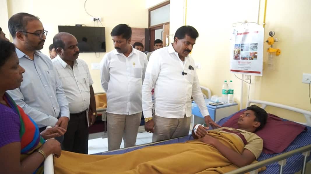 ಪೋಟೋ ಹಾಸನದ ಮಹಾಲಕ್ಷ್ಮಿ ಮಂಜಪ್ಪ ಮಲ್ಟಿ ಸ್ಪೆಷಾಲಿಟಿ ಹಾಸ್ಪಿಟಲ್ ನಲ್ಲಿ ಚಿಕಿತ್ಸೆ ಪಡೆಯುತ್ತಿರುವ ಗಾಯಾಳುಗಳನ್ನು ಶಾಸಕ ಎಚ್.ಡಿ. ತಮ್ಮಯ್ಯ ಗುರುವಾರ ಭೇಟಿ ಮಾಡಿ ಗಾಯಾಳುಗಳ ಆರೋಗ್ಯ ವಿಚಾರಿಸಿದರು.