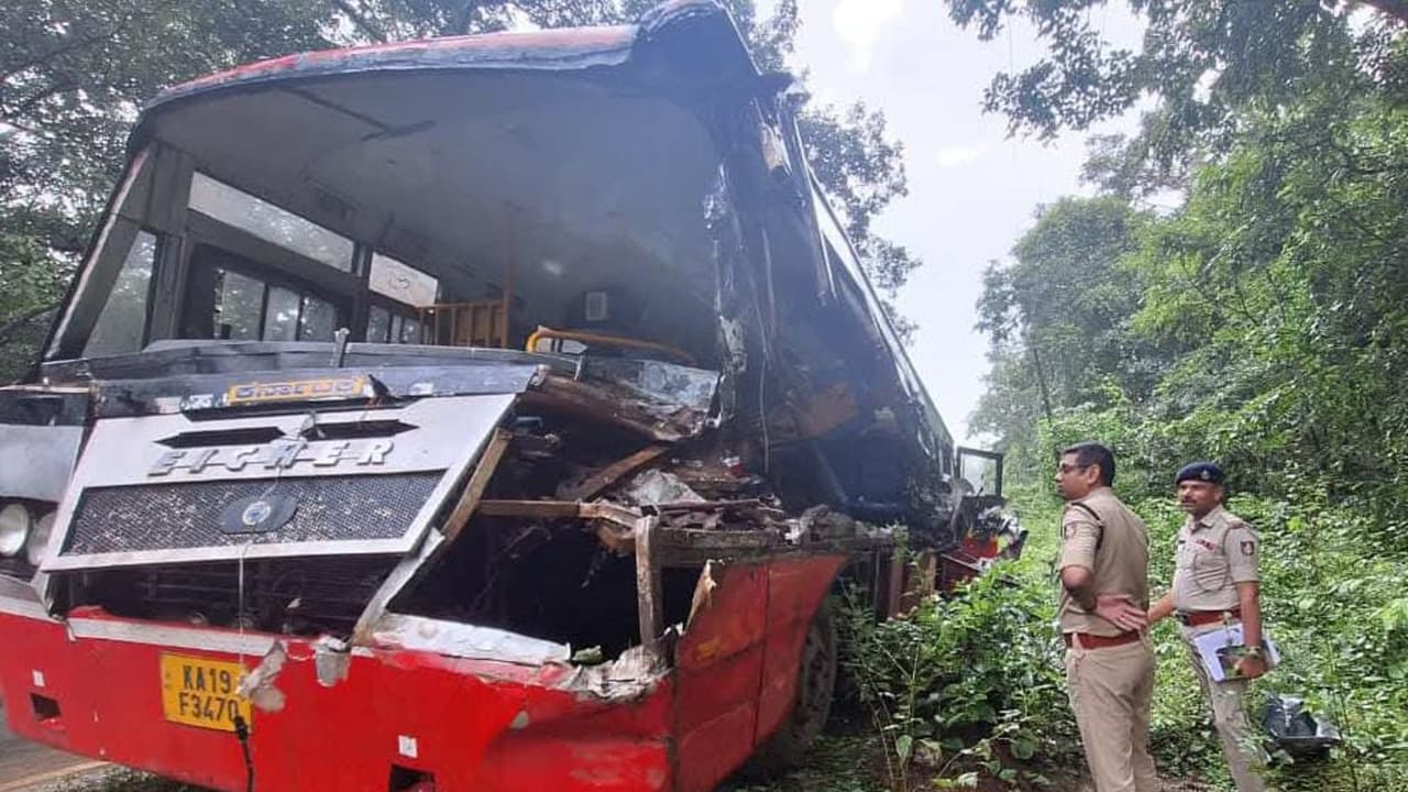 ಅಮೀನಗಡದಿಂದ ಧರ್ಮಸ್ಥಳಕ್ಕೆ ಹೊರಟಿದ್ದ ಬಸ್ ಹಿಟ್ಟಿನಬೈಲ್ ಕ್ರಾಸ್ ಬಳಿ ರಸ್ತೆಯ ಮೇಲೆ ನಿಲ್ಲಿಸಿದ್ದ ಲಾರಿಗೆ ಡಿಕ್ಕಿ ಹೊಡೆದು ಅವಘಡ ಸಂಭವಿಸಿದೆ. ಗಾಯಾಳುಗಳಿಗೆ ಯಲ್ಲಾಪುರ ಸರ್ಕಾರಿ ಆಸ್ಪತ್ರೆಯಲ್ಲಿ ಚಿಕಿತ್ಸೆ ನೀಡಿ, ಹೆಚ್ಚಿನ ಚಿಕಿತ್ಸೆಗಾಗಿ ಹುಬ್ಬಳ್ಳಿಯ ಕಿಮ್ಸ್ ಆಸ್ಪತ್ರೆಗೆ ದಾಖಲಿಸಲಾಗಿದೆ.ಘಟನೆಯಲ್ಲಿ ಬಸ್ ನ ಮುಂಭಾಗ ಸಂಪೂರ್ಣ ಜಖಂಗೊಂಡಿದೆ. ಬಸ್ ಚಾಲಕ, ಲಾರಿ ಚಾಲಕನ ವಿರುದ್ಧ ಯಲ್ಲಾಪುರ ಠಾಣೆಯಲ್ಲಿ ಪ್ರಕರಣ ದಾಖಲಾಗಿದೆ.