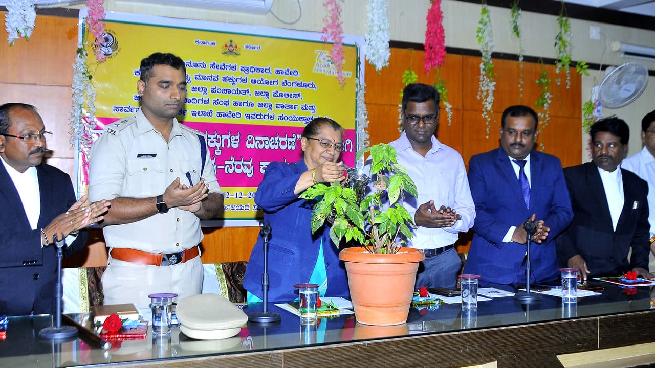 ಜಿಲ್ಲಾಧಿಕಾರಿಗಳ ಕಚೇರಿ ಸಭಾಂಗಣದಲ್ಲಿ ಮಂಗಳವಾರ ಜಿಲ್ಲಾ ಕಾನೂನು ಸೇವೆಗಳ ಪ್ರಾಧಿಕಾರ, ಕರ್ನಾಟಕ ರಾಜ್ಯ ಮಾನವ ಹಕ್ಕುಗಳ ಆಯೋಗ, ಜಿಲ್ಲಾಡಳಿತ, ಜಿಲ್ಲಾ ಪಂಚಾಯಿತಿ, ಜಿಲ್ಲಾ ಪೊಲೀಸ್, ಜಿಲ್ಲಾ ನ್ಯಾಯವಾದಿಗಳ ಸಂಘ, ವಾರ್ತಾ ಮತ್ತು ಸಾರ್ವಜನಿಕ ಸಂಪರ್ಕ ಇಲಾಖೆ ಸಹಯೋಗದಲ್ಲಿ ರಾಷ್ಟ್ರೀಯ ಮಾನವ ಹಕ್ಕುಗಳ ದಿನಾಚರಣೆ ಅಂಗವಾಗಿ ಕಾನೂನು ಅರಿವು-ನೆರವು ಕಾರ್ಯಕ್ರಮ ಉದ್ಘಾಟಿಸಿ, ಪ್ರತಿಜ್ಞಾವಿಧಿ ಬೋಧಿಸಿ ಅವರು ಮಾತನಾಡಿದರು.ಪ್ರತಿ ಪ್ರಜೆಗೂ ಘನತೆಯಿಂದ ಬದುಕುವ ಹಕ್ಕಿದೆ. ನಮ್ಮ ಹಿರಿಯರಿಂದ ಬಂದ ಘನತೆ-ಗೌರವ, ಮಾನವೀಯ ಮೌಲ್ಯಗಳನ್ನು ಉಳಿಸಿ ಬೆಳೆಸಿಕೊಂಡು ಹೋಗಬೇಕು. ಪ್ರತಿಯೊಬ್ಬರೂ ತಮ್ಮ ಹಕ್ಕುಗಳ ಜೊತೆಗೆ ತಮ್ಮ ಜವಾಬ್ದಾರಿಯನ್ನು ಅರಿತುಕೊಳ್ಳಬೇಕು. ಎಲ್ಲರೂ ಮಾನವೀಯ ಮೌಲ್ಯಗಳನ್ನು ಜೀವನದಲ್ಲಿ ಅಳವಡಿಸಿಕೊಳ್ಳಬೇಕು ಎಂದು ಸಲಹೆ ನೀಡಿದರು.