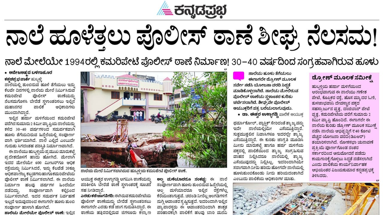 ಈ ಕುರಿತು ಮೇ 28ರಂದು ಕನ್ನಡಪ್ರಭದಲ್ಲಿ "ನಾಲೆ ಹೂಳೆತ್ತಲು ಪೊಲೀಸ್ ಠಾಣೆ ಶೀಘ್ರ ನೆಲಸಮ " ಶೀರ್ಷಿಕೆಯ ಅಡಿ ವಿಶೇಷ ವರದಿ ಪ್ರಕಟಸಲಾಗಿತ್ತು. ಜಯಭಾರತ ವೃತ್ತದಲ್ಲಿರುವ ಪಾಲಿಕೆ ಸಮುದಾಯ ಭವನ ಇಲ್ಲವೇ ಜಿಗಳೂರು ಕಲ್ಯಾಣ ಮಂಟಪ ಈ ಎರಡರಲ್ಲಿ ಒಂದು ಕಡೆ ಠಾಣೆ ಸ್ಥಳಾಂತರಕ್ಕಾಗಿ ಜಾಗ ನಿಗದಿಗೊಳಿಸಲಾಗಿತ್ತು. ಸೋಮವಾರದ ಪಾಲಿಕೆ ಸಭೆಯಲ್ಲಿ ಜಯಭಾರತ ವೃತ್ತದಲ್ಲಿರುವ ಪಾಲಿಕೆ ಸಮುದಾಯ ಭವನಕ್ಕೆ ಠಾಣೆ ಸ್ಥಳಾಂತರಿಸಲು ನಿರ್ಣಯ ಕೈಗೊಳ್ಳಲಾಗಿದೆ.ಕನ್ನಡಪ್ರಭದಲ್ಲಿ ವರದಿ ಪ್ರಕಟವಾದ ಕೆಲ ದಿನಗಳ ನಂತರ ಠಾಣೆ ಸ್ಥಳಾಂತರಕ್ಕೆ ಪೊಲೀಸ್ ಆಯುಕ್ತರಿಗೆ ಪತ್ರ ಬರೆಯಲಾಗಿತ್ತು. ನಂತರ ಪೊಲೀಸ್ ಆಯುಕ್ತರು ಠಾಣೆ ಸ್ಥಳಾಂತರಕ್ಕೆ ಕ್ರಮಕೈಗೊಳ್ಳುವಂತೆ ಮನವಿ ಮಾಡಿದ್ದರು. ಸೋಮವಾರ ನಡೆದ ಪಾಲಿಕೆ ಸಭೆಯಲ್ಲಿ ಠಾಣೆಯ ಸ್ಥಳಾಂತರಕ್ಕೆ ಕ್ರಮ ಕೈಗೊಳ್ಳಲಾಗಿದೆ ಎಂದು ಪಾಲಿಕೆ ಆಯುಕ್ತ ಡಾ. ಈಶ್ವರ ಉಳ್ಳಾಗಡ್ಡಿ ಹೇಳಿದರು.