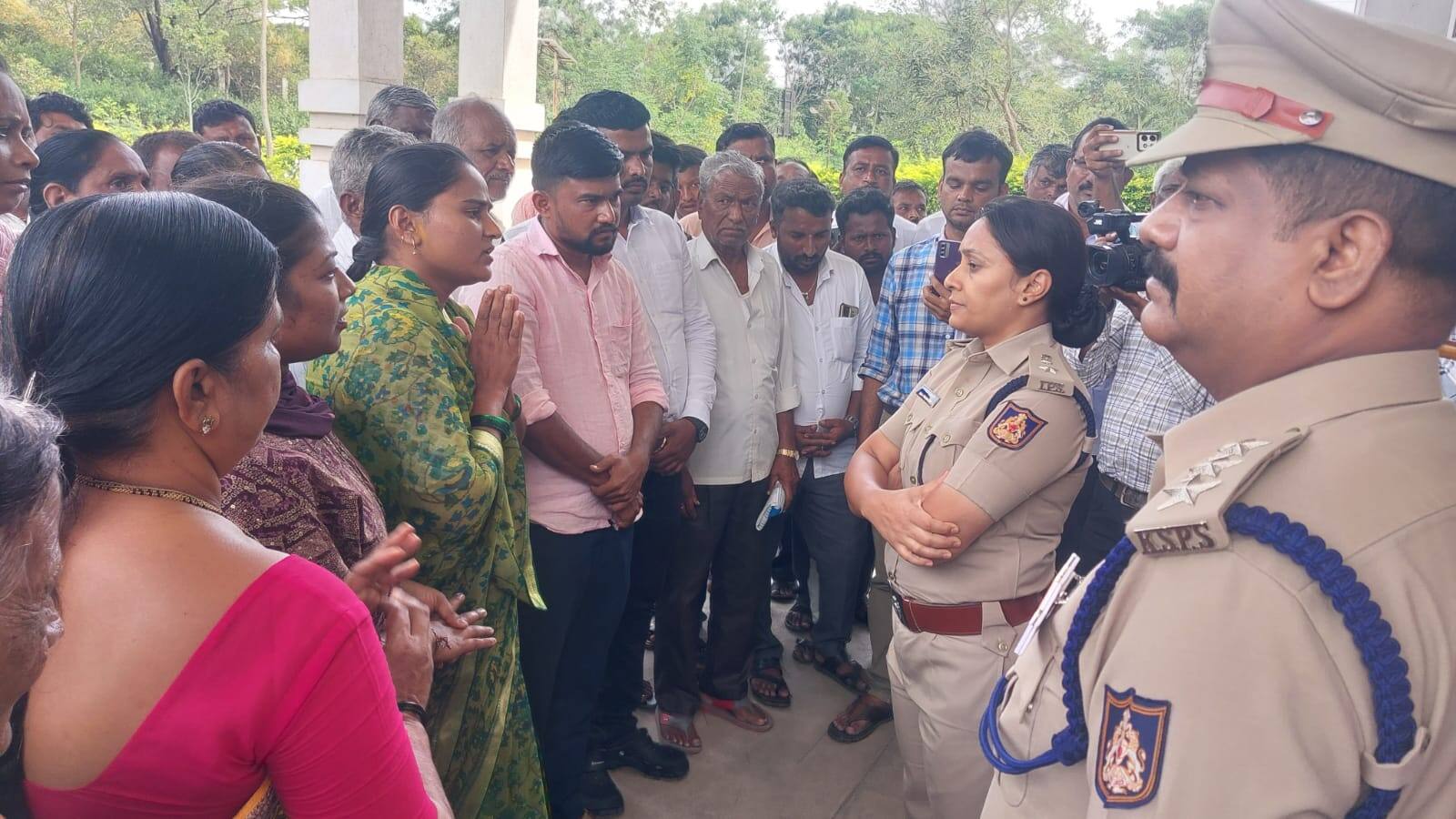 (ಬಾಕ್ಸ್) ಶ್ರೀಗಳ ನೇತೃತ್ವದ ಸಭೆಗೂ ಬಾರದ ಸಿಪಿಐ!ಜವಾಬ್ದಾರಿಯುತ ಹುದ್ದೆಯಲ್ಲಿರುವ ವೃತ್ತ ನಿರೀಕ್ಷಕರ ಇಂತಹ ವರ್ತನೆಯಿಂದ ಭಯಗೊಂಡ ಗ್ರಾಮಸ್ಥರೆಲ್ಲ ತಮ್ಮ ಮನೆಗಳಿಗೆ ಹಿಂದಿರುಗಿದ್ದೆವು. ಅನಂತರ ಘಟನೆ ಬಗ್ಗೆ ಶ್ರೀ ಗುರುಬಸವ ಸ್ವಾಮೀಜಿ ಬಳಿ ಚರ್ಚಿಸಿದೆವು. ಸಮಾಜದಲ್ಲಿ ಇಂತಹ ಘಟನೆ ನಡೆಯಬಾರದೆಂದು ಅ.14ರಸಂಜೆ 5.30 ಗಂಟೆಗೆ ಗ್ರಾಮಸ್ಥರು, ಸಿಪಿಐ ರವೀಶ ಅವರನ್ನು ಒಳಗೊಂಡ ಸಭೆ ಕರೆದಿದ್ದರು. ಆದರೆ, ಸಿಪಿಐ ರವೀಶ್ ಸಭೆಗೆ ಗೈರಾಗಿದ್ದಾರೆ. ಸಿಪಿಐ ರವೀಶ್ ನಮ್ಮೆಲ್ಲರ ಮೇಲೆ ದೌರ್ಜನ್ಯ ಎಸಗಿದ್ದಾರೆ. ಅವರನ್ನು ಸೇವೆಯಿಂದ ವಜಾಗೊಳಿಸಿ, ಗ್ರಾಮಸ್ಥರಿಗೆ ರಕ್ಷಣೆ, ನ್ಯಾಯ ಒದಗಿಸುವಂತೆ ಮಹಿಳೆಯರು ಜಿಲ್ಲಾ ಎಸ್ಪಿ ಉಮಾ ಪ್ರಶಾಂತ ಅವರಿಗೆ ಮನವಿ ಅರ್ಪಿಸಿದರು. ಈ ವೇಳೇ ಗ್ರಾಮಾಂತರ ಡಿವೈಎಸ್ಪಿ ಬಿ.ಎಸ್. ಬಸವರಾಜ ಇದ್ದರು.