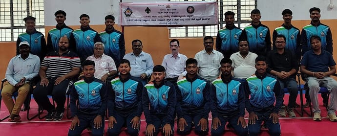 ತಂಡದ ಇಂತಿದೆ: ಕೃಷ್ಣ ನಡುವಿನಮನಿ (ನಾಯಕ), (ರಂಭಾಪುರಿ ಪದವಿ ಕಾಲೇಜು ಶಿಗ್ಗಾಂವಿ) ಆದರ್ಶ ಹೊತಗಿ, ಸುದೀಪ ಗೋಡಿ, ದೇವೇಂದ್ರ ವಡ್ಡರ, ಪ್ರಶಾಂತ ಬೋವಿವಡ್ಡರ (ಕುಮಾರೇಶ್ವರ ಪದವಿ ಕಾಲೇಜು ಹಾನಗಲ್ಲ) ಕುಮಾರೇಶ ಮೋಟೆಬೆನ್ನೂರ, ಲೋಹಿತ ಮೂಲಂಗಿ (ಜಿ.ಎಚ್. ಪದವಿ ಕಾಲೇಜು ಹಾವೇರಿ) ಭರತ ಬೊಮ್ಮನಹಳ್ಳಿ, ಮನು ಮೈಲಾರ (ಟಿಎಂಇಎಎಸ್ ಬಿಪಿಇಡಿ ಕಾಲೇಜು ಹಾವೇರಿ) ವಿಜಯಕುಮಾರಸಿಂಗ್ ಮೌನೇಶ ಕಮ್ಮಾರ (ಪ್ರಿಯದರ್ಶಿನಿ ಪದವಿ ಕಾಲೇಜು ರಟ್ಟೀಹಳ್ಳಿ) ಮಾಲತೇಶ ಮಲಗುಂದ (ಬಿಇಎಸ್ ಪದವಿ ಕಾಲೇಜು ಬ್ಯಾಡಗಿ) ಸುದೀಪ ಡೊಂಕಣ್ಣನವರ (ಸರ್ಕಾರಿ ಪದವಿ ಕಾಲೇಜು ಗಾಂಧಿಪುರ) ಮಲ್ಲಿಕಾರ್ಜುನ ಲಮಾಣಿ (ಸರ್ಕಾರಿ ಪದವಿ ಕಾಲೇಜು ಬ್ಯಾಡಗಿ), ಡಾ. ಬಸನಗೌಡ ಲಕ್ಷ್ಮೇಶ್ವರ (ಕುಮಾರೇಶ್ವರ ಕಾಲೇಜು ಹಾನಗಲ್ಲ), ವ್ಯವಸ್ಥಾಪಕ: ಶಶಿಧರ ಮಾಗೋಡ (ಬಿಇಎಸ್ ಕಾಲೇಜು ಬ್ಯಾಡಗಿ).