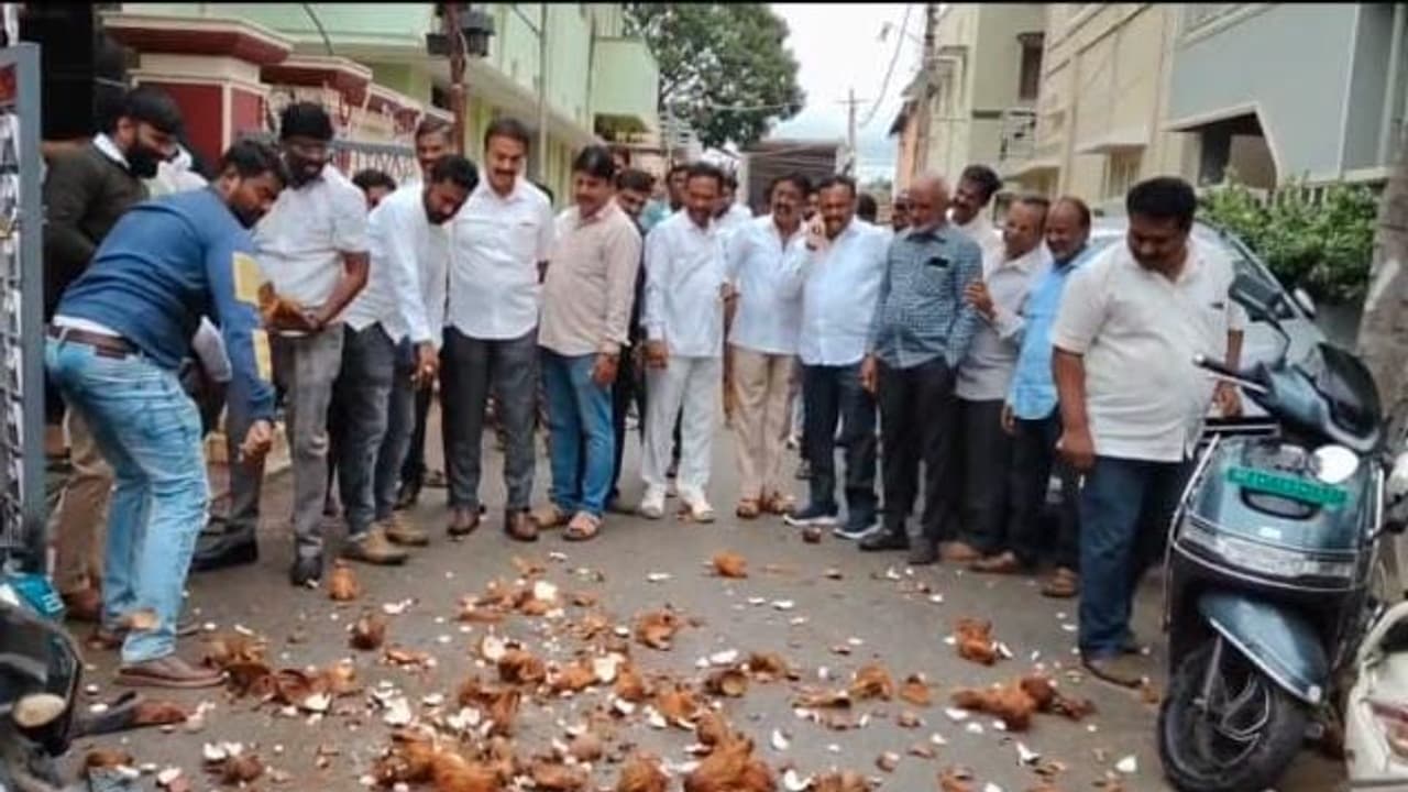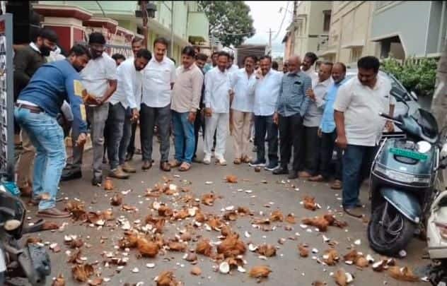 ಬಂಗಾರಪೇಟೆ: ಶಾಸಕ ಎಸ್.ಎನ್ ನಾರಾಯಣಸ್ವಾಮಿಗೆ ಸಚಿವ ಸ್ಥಾನ ದೊರಕಬೇಕೆಂದು ಕಾಂಗ್ರೆಸ್ ಕಾರ್ಯಕರ್ತರು ಹಾಗೂ ಮುಖಂಡರು ಶಾಂತಿನಗರದ ವೆಂಕಟೇಶ್ವರ ದೇವಾಲಯದಲ್ಲಿ ವಿಶೇಷ ಪೂಜೆ ಸಲ್ಲಿಸಿ ೧೦೧ ಈಡುಗಾಯಿ ಒಡೆದರು.