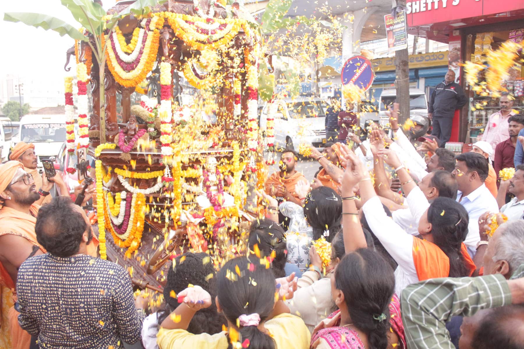 ಟೋಲ್ ಗೇಟ್ನಲ್ಲಿ ಪ್ರಾರಂಭವಾದ ಮೆರವಣಿಗೆ ಕೋಟೆ, ಹಳೆಯ ಖಾಸಗಿ ಬಸ್ ನಿಲ್ದಾಣ, ಚೌಕಿ, ಕಾಲೇಜು ರಸ್ತೆ, ಪೇಟೆ ರಾಮ ಮಂದಿರ, ಮಾರುಕಟ್ಟೆ ಜಂಕ್ಷನ್, ಮಹಾದೇವಪೇಟೆ ರಸ್ತೆ ಮತ್ತು ಚೌಡೇಶ್ವರಿ ದೇವಸ್ಥಾನ ಸೇರಿದಂತೆ ನಗರದ ಪ್ರಮುಖ ಬೀದಿಗಳಲ್ಲಿ ಸಾಗಿತು. ನಂತರ ಸೋಮವಾರಪೇಟೆ ರಸ್ತೆಯಲ್ಲಿರುವ ಕಾಶೀಮಠ ತಲುಪಿತು.