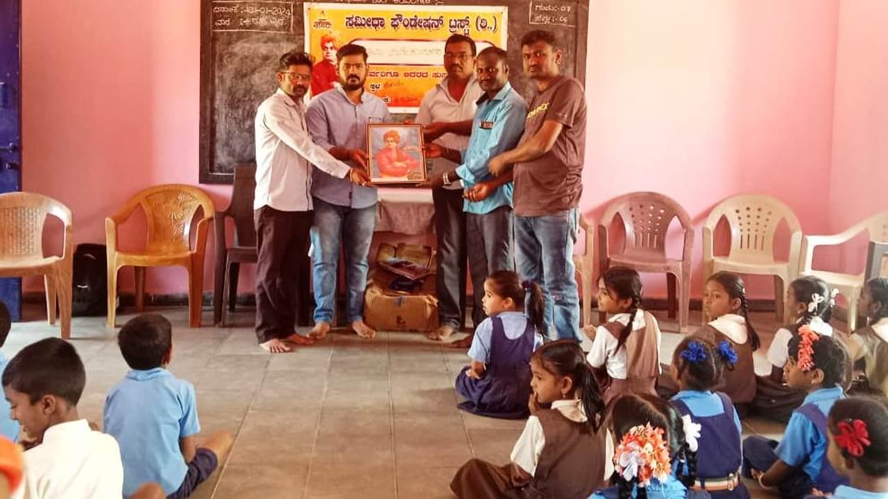 ಶಾಲೆಗೆ ಸಮೀಧಾ ಫೌಂಡೇಷನ್ ಟ್ರಸ್ಟ ವತಿಯಿಂದ ಸ್ವಾಮಿ ವಿವೇಕಾನಂದರ ಭಾವಚಿತ್ರ ಕೊಡುಗೆಯಾಗಿ ನೀಡಲಾಯಿತಲ್ಲದೇ ಶಾಲಾ ಮಕ್ಕಳಿಗೆ ಶಾಲಾ ಪರಿಕರ ಹಾಗೂ ಆಟಿಕೆ ಸಾಮಾನು ವಿತರಿಸಲಾಯಿತು.ಶಾಲೆಯ ಮುಖ್ಯೋದ್ಯಾಪಕ ಪಟಗಾರ್ ಸ್ವಾಗತಿಸಿ ವಂದಿಸಿದರು. ಸಮೀಧಾ ಫೌಂಡೇಷನ್ ಟ್ರಸ್ಟ ಕಾರ್ಯದರ್ಶಿ ಬಮ್ಮು ಪೋಂಡೆ, ಎಸ್ ಡಿಎಂಸಿ ಅಧ್ಯಕ್ಷ ಸಹದೇವ್ ತಾಂಬೆ, ಸದಸ್ಯ ಫಕಿರಪ್ಪ ಕಟ್ಟಿಮನಿ ಮುಂತಾದವರು ಉಪಸ್ಥಿತರಿದ್ದರು.