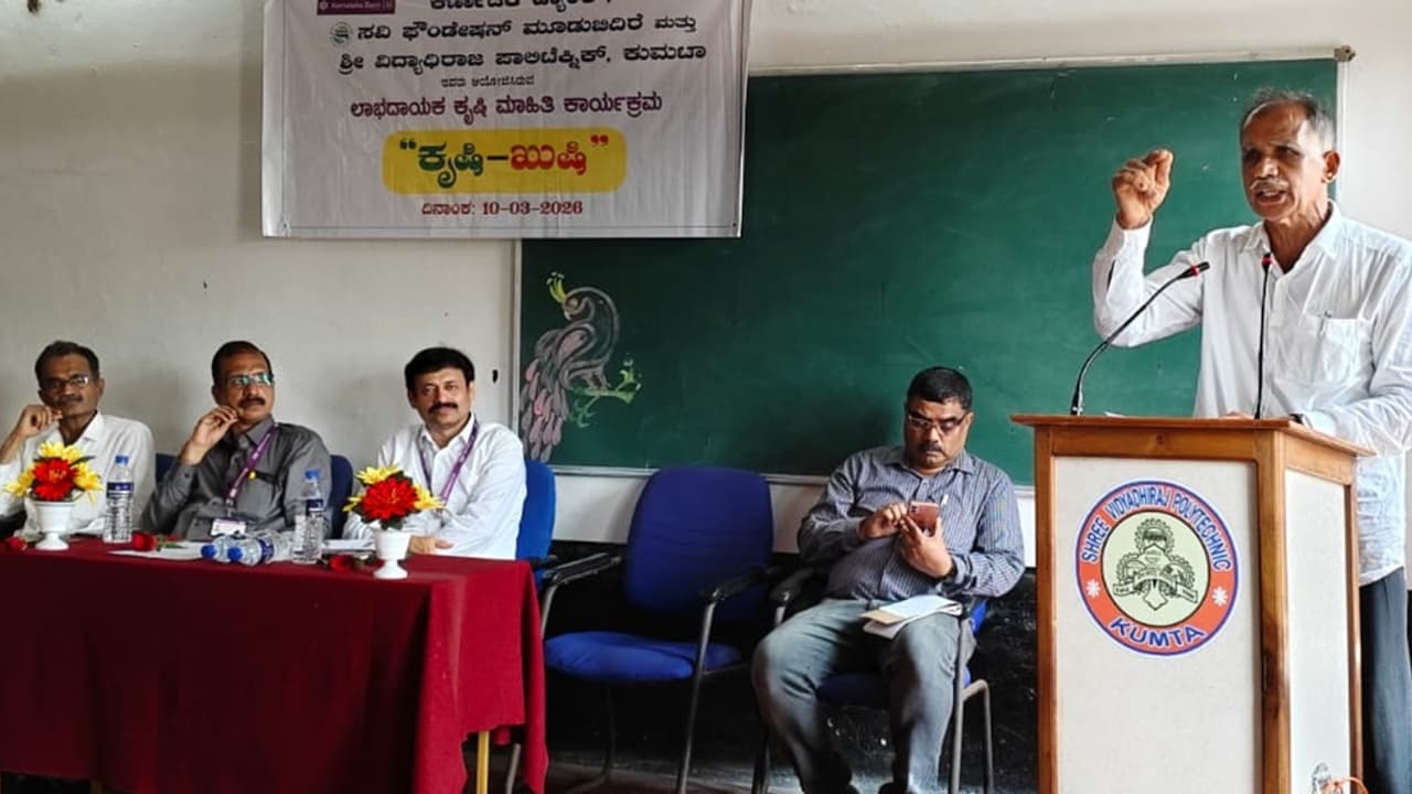 ಕನ್ನಡಪ್ರಭ ವಾರ್ತೆ ಕುಮಟಾಕೃಷಿಯನ್ನು ಇತರ ಪ್ರಮುಖ ಉದ್ಯಮಗಳಂತೆ ಪರಿಗಣಿಸಿ ಅದರಿಂದ ಅಧಿಕ ಲಾಭ ಗಳಿಸುವತ್ತ ಯುವಕರು ಮುನ್ನಡೆಯಬೇಕು. ಇಂದು ಕೃಷಿಯಿಂದ ದೂರವಾಗುತ್ತಿರುವ ಯುವ ಸಮುದಾಯ ಭವಿಷ್ಯದ ದಿನಗಳಲ್ಲಿ ಕೃಷಿಯ ಮಹತ್ವವನ್ನು ಅರಿತು ಅದನ್ನೇ ನೆಚ್ಚಿಕೊಳ್ಳುವ ಪರಿಸ್ಥಿತಿ ಬರಲಿದೆ ಎಂದು ಉಡುಪಿಯ ಕರ್ಣಾಟಕ ಬ್ಯಾಂಕ್ ಎಜಿಎಂ ರಮೇಶ್ ವೈದ್ಯ ಹೇಳಿದರು.ಇಲ್ಲಿನ ವಿದ್ಯಾಧಿರಾಜ ಪಾಲಿಟೆಕ್ನಿಕ್ನಲ್ಲಿ ಮಂಗಳವಾರ ಕರ್ನಾಟಕ ಬ್ಯಾಂಕ್ ಹಾಗೂ ಸವಿ ಫೌಂಡೇಶನ್, ಮೂಡುಬಿದ್ರೆ ಇವುಗಳ ಸಂಯುಕ್ತ ಆಶ್ರಯದಲ್ಲಿ ಹಮ್ಮಿಕೊಂಡಿದ್ದ ಕೃಷಿ - ಖುಷಿ ಕಾರ್ಯಕ್ರಮ ಉದ್ಘಾಟಿಸಿ ಮಾತನಾಡಿದರು.ಕೃಷಿಯ ಬಗ್ಗೆ ಯುವಜನತೆಯಲ್ಲಿ ನಿರಾಸಕ್ತಿ ಬೇಡ. ಕೃಷಿಗೆ ಉಜ್ವಲ ಭವಿಷ್ಯವಿದೆ. ವೈಜ್ಞಾನಿಕ ಕೃಷಿ ವಿಧಾನಗಳನ್ನು ಅನುಸರಿಸುವ ಮೂಲಕ ಉತ್ತಮ ಇಳುವರಿ ಪಡೆಯಲು ರೈತರಿಗೆ ನೆರವಾಗುವ ಉದ್ದೇಶದಿಂದ ಕರ್ನಾಟಕ ಬ್ಯಾಂಕ್ ವಿವಿಧ ರೀತಿಯ ಸಹಕಾರ ನೀಡಲು ಸದಾ ಸಿದ್ಧವಿದೆ ಎಂದರು.ಸಂಪನ್ಮೂಲ ವ್ಯಕ್ತಿಯಾಗಿ ಉಡುಪಿ ಜಿಲ್ಲಾ ಕೃಷಿಕ ಸಂಘದ ಅಧ್ಯಕ್ಷ ರಾಮಕೃಷ್ಣ ಶರ್ಮಾ ಬಂಟಕಲ್ಲು ಮಾತನಾಡಿ, ಕೃಷಿಯಲ್ಲಿ ಸೂಕ್ತ ವೈಜ್ಞಾನಿಕ ವಿಧಾನ ಅನುಸರಿಸದಿರುವುದರಿಂದ ಹಲವಾರು ಸಂದರ್ಭಗಳಲ್ಲಿ ಇಳುವರಿ ಕಡಿಮೆಯಾಗುತ್ತದೆ. ಸರಿಯಾದ ಕೃಷಿ ತಂತ್ರಜ್ಞಾನ, ಗೊಬ್ಬರ ಬಳಕೆ, ನೀರು ನಿರ್ವಹಣೆ ಹಾಗೂ ಬೆಳೆ ಸಂರಕ್ಷಣೆ ವಿಧಾನಗಳನ್ನು ಅನುಸರಿಸಿದರೆ ಕೃಷಿಯನ್ನು ಸದಾ ಲಾಭದಾಯಕವಾಗಿಸಬಹುದು ಎಂದು ಸಮಗ್ರವಾಗಿ ವಿವರಿಸಿದರು.ಪ್ರಾಚಾರ್ಯ ಗೋಪಾಲಕೃಷ್ಣ ಡಿ. ಭಟ್ ಅಧ್ಯಕ್ಷತೆ ವಹಿಸಿದ್ದರು. ಕರ್ಣಾಟಕ ಬ್ಯಾಂಕ್ ಮುಖ್ಯ ಪ್ರಬಂಧಕ ರಂಜಿತ ಎ.ಶೆಟ್ಟಿ, ಶಾಖಾ ವ್ಯವಸ್ಥಾಪಕ ಚಿಂತಾಮಣಿ ಜಿ. ಪಂಡಿತ, ಉಪಪ್ರಾಚಾರ್ಯ ದೀಪಕ ಪ್ರಭು ಉಪಸ್ಥಿತರಿದ್ದರು. ಪ್ರಗತಿ ಶಾನಭಾಗ ಪ್ರಾರ್ಥಿಸಿದಳು. ಸಂಯೋಜಕರಾದ ಮೂಡುಬಿದ್ರೆ ಸವಿ ಫೌಂಡೇಶನ್ ಮೆನೇಜಿಂಗ್ ಟ್ರಸ್ಟಿ ಡಾ. ಸಂದೀಪ ನಾಯಕ ಪ್ರಾಸ್ತಾವಿಕ ಮಾತಿನೊಂದಿಗೆ ಸ್ವಾಗತಿಸಿದರು.