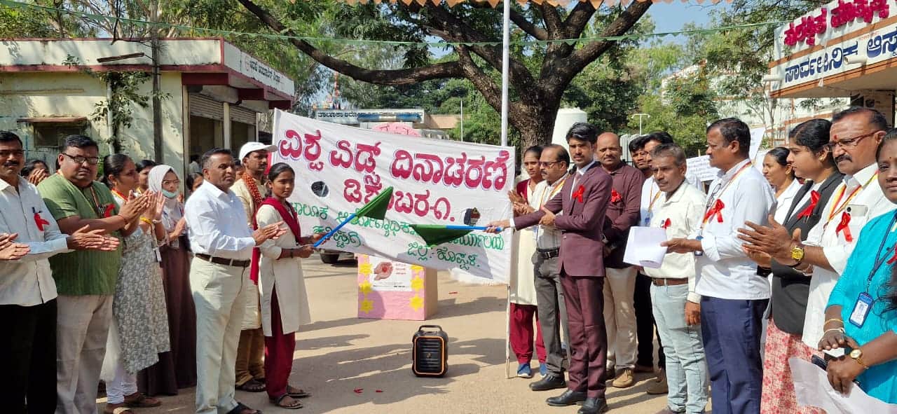 ಕುಷ್ಟಗಿ ಪಟ್ಟಣದ ಸಾರ್ವಜನಿಕ ಆಸ್ಪತ್ರೆಯ ಆವರಣದಲ್ಲಿ ವಿಶ್ವ ಏಡ್ಸ್ ದಿನಾಚರಣೆ ಅಂಗವಾಗಿ ನಡೆದ ಜಾಗೃತಿ ಜಾಥಾಕ್ಕೆ ಹೆಚ್ಚುವರಿ ಸಿವಿಲ್ ನ್ಯಾಯಾಧೀಶ ಮಹಾಂತೇಶ ಚೌವಲಗಿ ಚಾಲನೆ ನೀಡಿದರು.