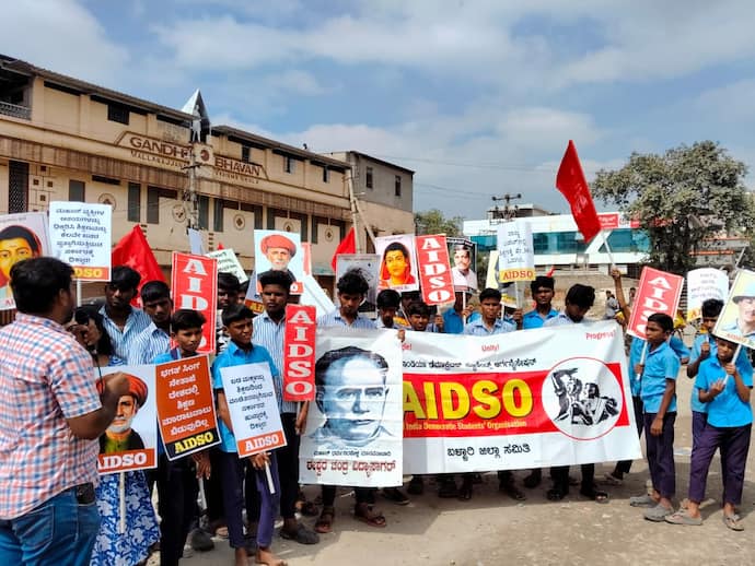 ಬಳ್ಳಾರಿ: ಕೆಪಿಎಸ್- ಮ್ಯಾಗ್ನೆಟ್ ಶಾಲೆಗಳಡಿ ಸುತ್ತಲಿನ ಶಾಲೆಗಳ ವಿಲೀನದೊಂದಿಗೆ 25 ಸಾವಿರಕ್ಕೂ ಅಧಿಕ ಸರ್ಕಾರಿ ಶಾಲೆಗಳಿಗೆ ಕಂಟಕ ತಂದೊಡ್ಡಿರುವ ರಾಜ್ಯ ಸರ್ಕಾರದ ನಡೆ ಖಂಡಿಸಿ ಅಖಿಲ ಭಾರತ ಪ್ರಜಾಸತ್ತಾತ್ಮಕ ವಿದ್ಯಾರ್ಥಿ ಒಕ್ಕೂಟ (ಎಐಡಿಎಸ್ಒ) ನೇತೃತ್ವದಲ್ಲಿ ನಗರದಲ್ಲಿ ಪ್ರತಿಭಟನೆ ನಡೆಯಿತು.