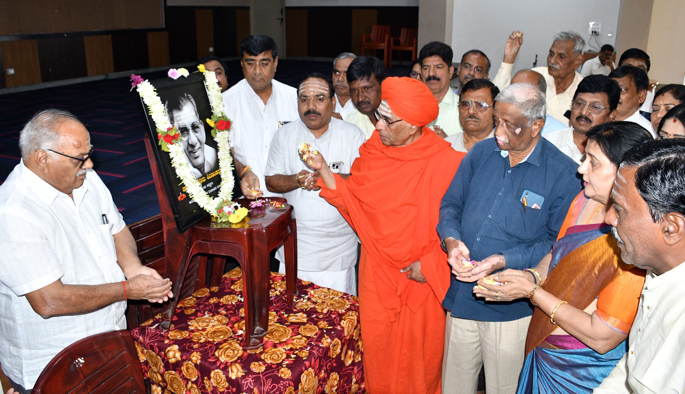 ಈ ಸಂದರ್ಭದಲ್ಲಿ ಅವರ ಭಾವಚಿತ್ರಕ್ಕೆ ಪುಷ್ಪನಮನ ಸಲ್ಲಿಸಿ ಮೌನಾಚರಣೆ ಮಾಡಲಾಯಿತು.ಸಭೆಯಲ್ಲಿ ಪ್ರಮುಖರಾದ ತಾರಾನಾಥ್ , ಬಸವರಾಜಪ್ಪ, ಎಸ್.ಪಿ. ದಿನೇಶ್, ಮಹಾಲಿಂಗ ಶಾಸ್ತ್ರಿ, ರೇಣುಕಾರಾಧ್ಯ, ವಾಗ್ದೇವಿ, ಮಲ್ಲಿಕಾರ್ಜುನಸ್ವಾಮಿ, ಸಮಾಜದ ಮುಖಂಡರು ಉಪಸ್ಥಿತರಿದ್ದರು.