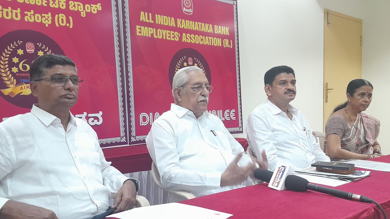 ಕೆಪಿಬಿಇಎಫ್ ರಾಜ್ಯ ಪ್ರಧಾನ ಕಾರ್ಯದರ್ಶಿ ಎಂ.ಜಯರಾಮ್, ಅಖಿಲ ಭಾರತ ಕರ್ಣಾಟಕ ಬ್ಯಾಂಕ್ ನೌಕರರ ಸಂಘದ ಪ್ರಧಾನ ಕಾರ್ಯದರ್ಶಿ ಕೆ.ಜಿ. ಫಣೀಂದ್ರ, ಪೂರ್ಣಿಮಾ ರಾವ್ ಇದ್ದರು.