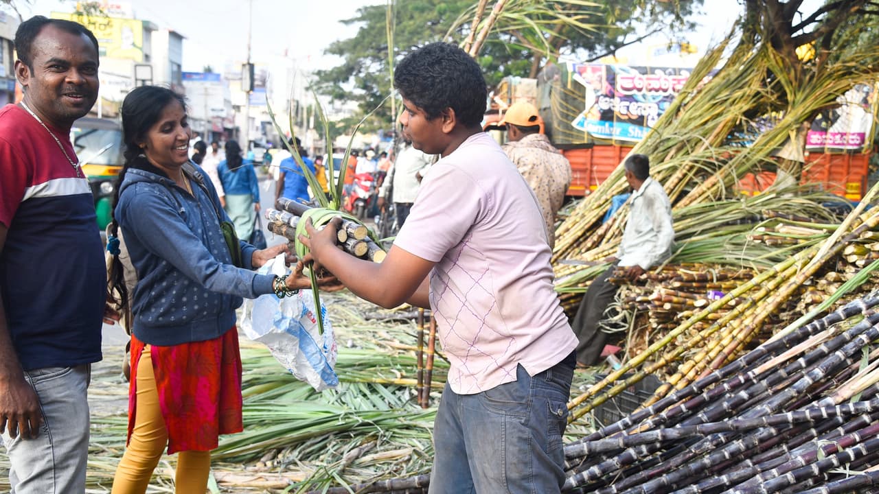 ರಾಜ್ಯದಲ್ಲಿ ಉತ್ತಮ ಮಳೆಯಾಗದೆ ಬೆಳೆ ಕೈಗೆ ಸಿಗದೆ ರೈತ ಸಮೂಹ ಸಂಕಷ್ಟಕ್ಕೀಡಾಗಿದೆ. ಆದರೂ ಸುಗ್ಗಿ ಹಬ್ಬವನ್ನು ಸಂಭ್ರಮದಿಂದ ಆಚರಿಸಬೇಕು ಎನ್ನುವುದು ಅನ್ನದಾತರ ಆಶಯ. ಹಾಗಾಗಿ ಮಾರುಕಟ್ಟೆಯಲ್ಲಿ ಹಬ್ಬಕ್ಕೆ ಅಗತ್ಯವಾಗಿ ಬೇಕಾಗಿರುವ ವಸ್ತುಗಳ ಬೆಲೆ ಗಗನಕ್ಕೇರಿದ್ದರೂ ಲೆಕ್ಕಿಸದೆ ಖರೀದಿಸಲು ಮುಗಿಬೀಳುತ್ತಿರುವುದು ಕಂಡು ಬರುತ್ತಿದೆ.