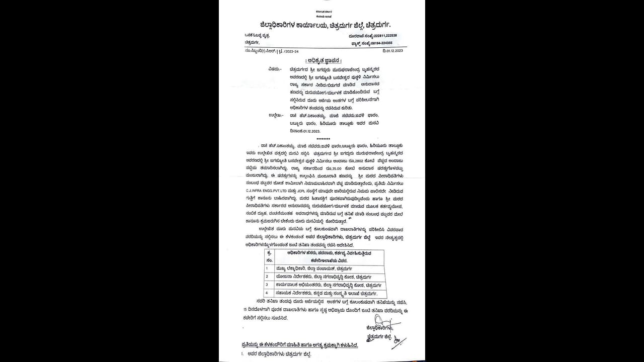 ಜಿಲ್ಲಾಧಿಕಾರಿ ದಿವ್ಯಪ್ರಭು ತನಿಖೆಗಾಗಿ ಆದೇಶಿಸಿರುವ ಆಜ್ಞಾಪನಾ ಪತ್ರ