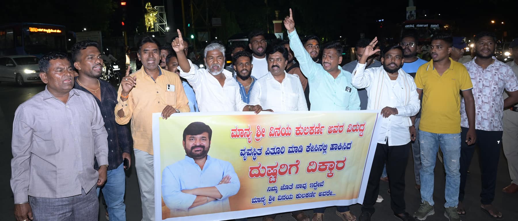 ಈ ವೇಳೆ ಮಾತನಾಡಿದ ಮುಖಂಡರು, ವಿನಯ ಕುಲಕರ್ಣಿ ಅವರ ಮೇಲೆ ನಿರಂತರವಾಗಿ ಅನ್ಯಾಯ ಆಗುತ್ತಿದೆ. ರಾಜಕೀಯ ಷಡ್ಯಂತ್ರ ಮತ್ತು ಕುತಂತ್ರದಿಂದಲೇ ಕೆಲ ಪಟ್ಟಭದ್ರ ಹಿತಾಶಕ್ತಿಗಳು ಅವರನ್ನು ಕೊಲೆ ಪ್ರಕರಣದಲ್ಲಿ ಸಿಲುಕಿಸಿದ್ದಾರೆ ಎಂದು ಆರೋಪಿಸಿದರು.ಯೋಗೇಶಗೌಡರ ಕೊಲೆ ಪ್ರಕರಣದಲ್ಲಿ ದೋಷಿಯಾದ ವಿನಯ ಕುಲಕರ್ಣಿ ವಿರುದ್ಧ ವ್ಯವಸ್ಥಿತ ಪಿತೂರಿ ನಡೆದಿದೆ. ಅರವಿಂದ ಕೇಜ್ರಿವಾಲ್ ಅವರಂತೆ ನಮ್ಮ ನಾಯಕರು ನಿರ್ದೋಷಿಯಾಗಿ ಹೊರಬರುತ್ತಾರೆ. ಅವರ ಬೆಂಬಲಕ್ಕೆ ತಾವಿರುವುದಾಗಿ ಹೇಳಿದರು. ಈ ವೇಳೆ ಈಶ್ವರ ಶಿವಳ್ಳಿ, ಪರಮೇಶ ಕಾಳೆ, ಆನಂದ ಸಿಂಗನಾಥ್, ಬಸವರಾಜ ಜಾಧವ, ಪ್ರವೀಣ ನರೇಂದ್ರ, ಶಶಿ ಕೋಲ್ಕಾರ, ಬಸು ಧಾರವಾಡ, ಕಾರ್ತಿಕ ನಾಯಕ, ಮಾಳು ಪಾಟೀಲ, ಗೌರಮ್ಮ ಬಲೋಗಿ, ಭೀಮಪ್ಪ ಕಾಸಾಯಿ ಮತ್ತು ಸೌರಭ ಕ್ಯಾತಣ್ಣವರ ಇದ್ದರು.