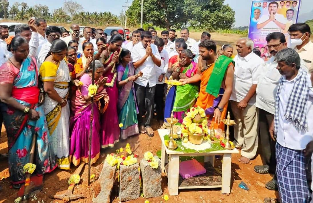 ಬಳಿಕ ಮಾತನಾಡಿದ ಶಾಸಕರು, ನೆಲಮಂಗಲ ಮೀಸಲಾತಿಯ ಕ್ಷೇತ್ರವಾಗಿದ್ದು, ಅನೇಕ ಶಾಸಕರನ್ನು ನೋಡಿದೆ. ಆದರೆ ಇಲ್ಲಿಯವರೆಗೂ ಕೆಲ ಪರಿಶಿಷ್ಟಜಾತಿ ಹಾಗೂ ವಂಗಡದ ಜನರು ವಾಸಿಸುವ ಗ್ರಾಮಗಳಲ್ಲಿ ಮೂಲಸೌಕರ್ಯಗಳು ಇಲ್ಲದಿರುವುದು ನನಗೆ ನೋವು ತಂದಿದೆ. ನಾನು ಚುನಾವಣೆ ಸಮಯದಲ್ಲಿ ಬಂದಾಗ ರಸ್ತೆಗಾಗಿ ಸ್ಥಳೀಯರು ಮನವಿ ಮಾಡಿದ್ದರು. ಅವರ ಮನವಿಗೆ ಸ್ಪಂದಿಸಿ ರಸ್ತೆ ನಿರ್ಮಾಣ ಕಾಮಗಾರಿಗೆ ಗುದ್ದಲಿಪೂಜೆ ಮಾಡಿದ್ದೇನೆ. ಇಂದು ಅವರ ಮುಖದಲ್ಲಿ ಸಂತೋಷ ಕಂಡು ನನಗೆ ಬಹಳಷ್ಟು ಸಂತೋಷವಾಗಿದೆ. ಬೇರೆ ಶಾಸಕರ ಬಗ್ಗೆ ಟೀಕೆ ಮಾಡುವುದಿಲ್ಲ ಆದರೆ ವಾಸ್ತವತೆಯನ್ನು ಜನರೇ ನೋಡಬೇಕಾಗಿದೆ ಎಂದರು.60 ವರ್ಷದ ನಂತರ ರಸ್ತೆ ಅಭಿವೃದ್ಧಿ: ಗ್ರಾಮದ ಯುವಕ ನಾಗರಾಜು ಮಾತನಾಡಿ, ಆಲೂರು ಕಾಲೊನಿಯಲ್ಲಿ 40ಕ್ಕೂ ಹೆಚ್ಚು ಮನೆಗಳಿದ್ದು 200ಕ್ಕೂ ಹೆಚ್ಚು ಜನರು ವಾಸಿಸುತ್ತಾರೆ. ಆದರೆ ಈ ಗ್ರಾಮಕ್ಕೆ ಕಾಲು ದಾರಿ ಬಿಟ್ಟರೆ ರಸ್ತೆಯೂ ಇರಲಿಲ್ಲ, ರಸ್ತೆಯಿಲ್ಲ ಎಂದು ಗ್ರಾಮಕ್ಕೆ ಹೆಣ್ಣುಗಳನ್ನು ನೀಡುತ್ತಿರಲಿಲ್ಲವಂತೆ. ಈ ರಸ್ತೆಗಾಗಿ 50 ವರ್ಷಗಳಿಂದ ಗ್ರಾಮದ ಜನರು ಹೋರಾಟ ಮಾಡಿದ್ದಾರೆ. ಸೋಲೂರು ಅತಂತ್ರದ ಸ್ಥಿತಿಯ ಹಿನ್ನೆಲೆ ಅಂದಿನ ಶಾಸಕರು, ಅಧಿಕಾರಿಗಳು ಸ್ಪಂದಿಸದೆ ಸಮಸ್ಯೆ ಬಗೆಹರಿದಿರಲಿಲ್ಲ, ಶಾಸಕರಾದ ಶ್ರೀನಿವಾಸ್ ಅವರ ಸಹಕಾರದಿಂದ ನಾನು ಸ್ವತಃ ತಹಸೀಲ್ದಾರ್, ಜಿಲ್ಲಾಧಿಕಾರಿಗಳನ್ನು ಸ್ಥಳಕ್ಕೆ ಕರೆಸಿ ಲೋಕಾಯುಕ್ತರು, ಶಾಸಕರ ಸಹಕಾರ ಪಡೆದು ಸ್ಥಳೀಯ ಜಮೀನಿನವರ ಮನವೊಲಿಸಿ ಮಾಲೀಕರಿಂದ 10 ಅಡಿಯಷ್ಟು ರಸ್ತೆಗೆ ಜಮೀನು ಬಿಡಿಸಿಕೊಂಡಿದ್ದೇವೆ. ಈಗ ಶಾಸಕರು 1 ಕೋಟಿ ಅನುದಾನ ನೀಡಿ ಸಿಸಿ ರಸ್ತೆ ಕಾಮಗಾರಿಗೆ ಚಾಲನೆ ನೀಡಿದ್ದಾರೆ. ನಮ್ಮ ಗ್ರಾಮದ ಜನರ 60 ವರ್ಷದ ಸಮಸ್ಯೆ ಪರಿಹಾರವಾಗಿದೆ ಎಂದು ಭಾವುಕರಾದರು.