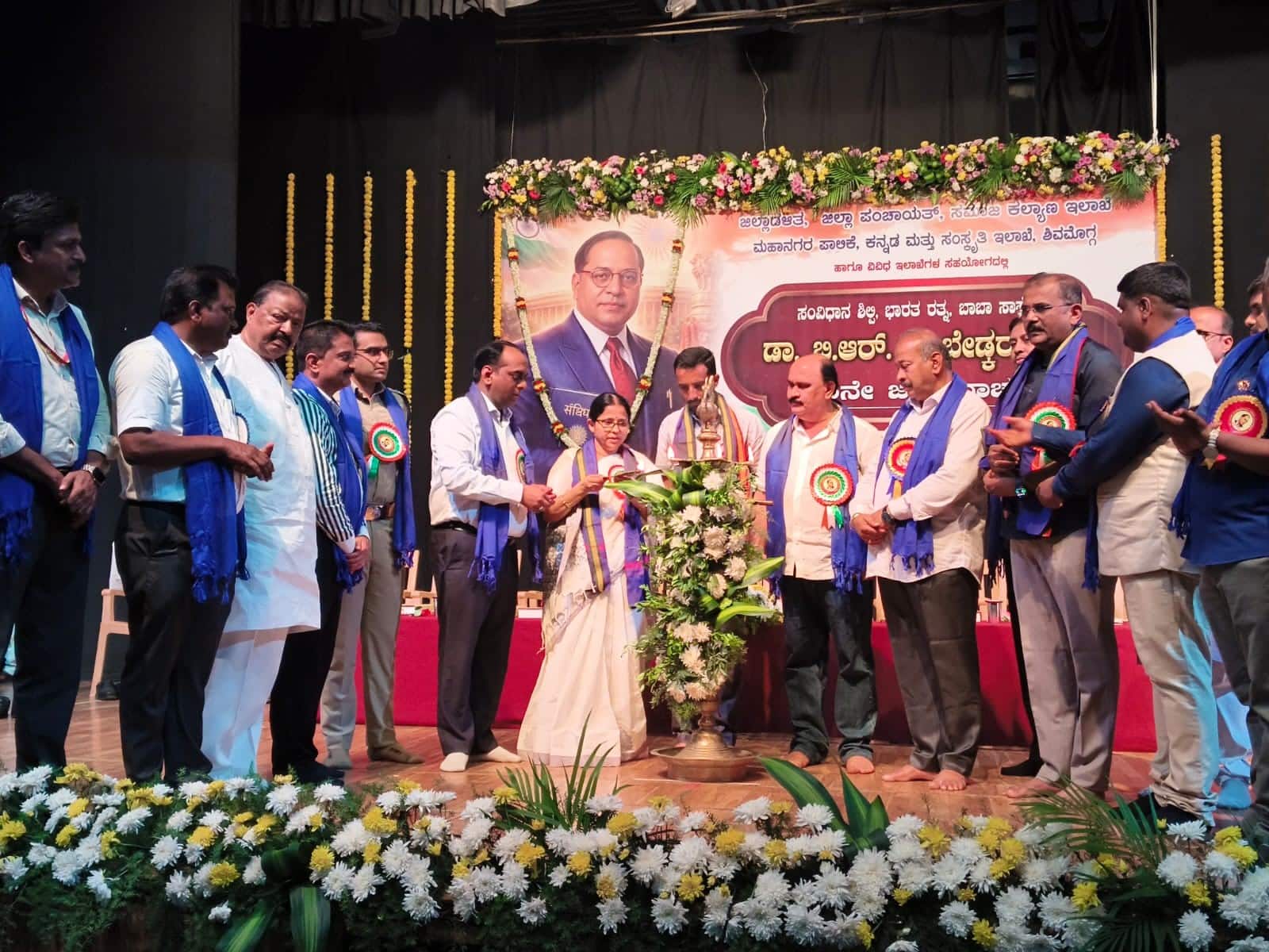 ಭಾರತೀಯ ಸಂವಿಧಾನ ರಚನೆ ಮುನ್ನ ನಮ್ಮ ದೇಶದ ಪ್ರತಿ ಅಂಶಗಳನ್ನು ಅಧ್ಯಯನ ಮಾಡಿ, ಸರ್ವಧರ್ಮಗಳು ಸಮವೆಂದು ಸಾರುವ ಅಂಶಗಳ ಆಧಾರದ ಮೇಲೆ ಸಂವಿಧಾನ ರಚಿಸಿ ಪ್ರಾತಸ್ಮರಣೀಯರಾಗಿದ್ದಾರೆ. ದೇಶಕ್ಕಾಗಿ ಬದುಕಿದ ಅವರ ಕಾರ್ಯಗಳು ಎಂದಿಗೂ ಜೀವಂತ ಎಂದರು.ಶಾಸಕಿ ಶಾರದಾ ಪೂರ್ಯಾನಾಯ್ಕ ಮಾತನಾಡಿ, ಡಾ.ಬಿ.ಆರ್.ಅಂಬೇಡ್ಕರ್ ದೈವದತ್ತ ಕೊಡುಗೆ. ನಮ್ಮ ಸಂವಿಧಾನಕ್ಕೆ ಮಹಾನ್ ಶಕ್ತಿ ಇದ್ದು, ಪರಿಣಾಮಕಾರಿಯಾಗಿ ನಾವೆಲ್ಲ ಅನುಷ್ಠಾನ ಮಾಡಿಕೊಂಡು ಹೋಗಬೇಕಿದೆ. ನಮ್ಮೆಲ್ಲರಿಗೆ ಧ್ವನಿ ನೀಡಿದ ಮಹಾನ್ ಚೇತನವು ಹಾಕಿಕೊಟ್ಟ ದಾರಿಯಲ್ಲಿ ನಾವು ಸಾಗಬೇಕು. ಮಹಿಳೆಯರ ಹಕ್ಕುಗಳು ಮತ್ತು ಸಮಾನತೆಗಾಗಿ ವಿಶೇಷವಾಗಿ ಹೋರಾಡಿದ ಶಕ್ತಿ ಎಂದರು.