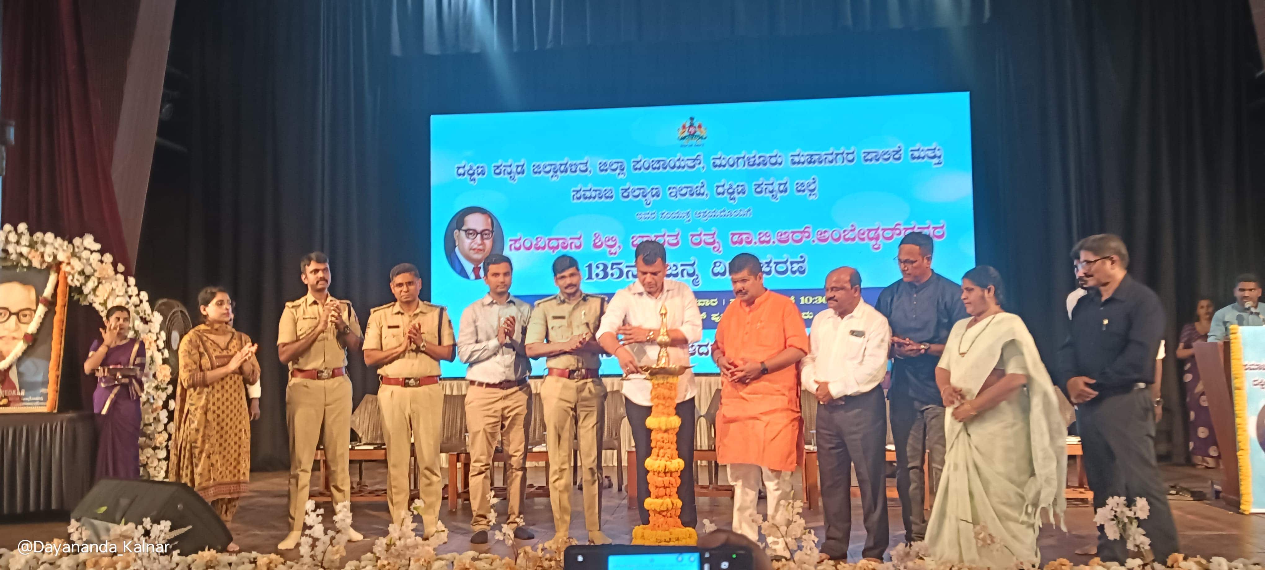 ಮಂಗಳೂರಿನ ಕುದ್ಮಲ್ ರಂಗರಾವ್ ಪುರಭವನದಲ್ಲಿ ಮಂಗಳವಾರ ದಕ್ಷಿಣ ಕನ್ನಡ ಜಿಲ್ಲಾಡಳಿತ, ಜಿಲ್ಲಾ ಪಂಚಾಯತ್, ಮಂಗಳೂರು ಮಹಾನಗರ ಪಾಲಿಕೆ ಮತ್ತು ಸಮಾಜ ಕಲ್ಯಾಣ ಇಲಾಖೆ ಸಂಯುಕ್ತ ಆಶ್ರಯದಲ್ಲಿ ನಡೆದ ಸಂವಿಧಾನ ಶಿಲ್ಪಿ, ಭಾರತರತ್ನ ಡಾ.ಬಿ.ಆರ್.ಅಂಬೇಡ್ಕರ್ ಅವರ 135ನೇ ಜನ್ಮದಿನಾಚರಣೆ ಕಾರ್ಯಕ್ರಮ