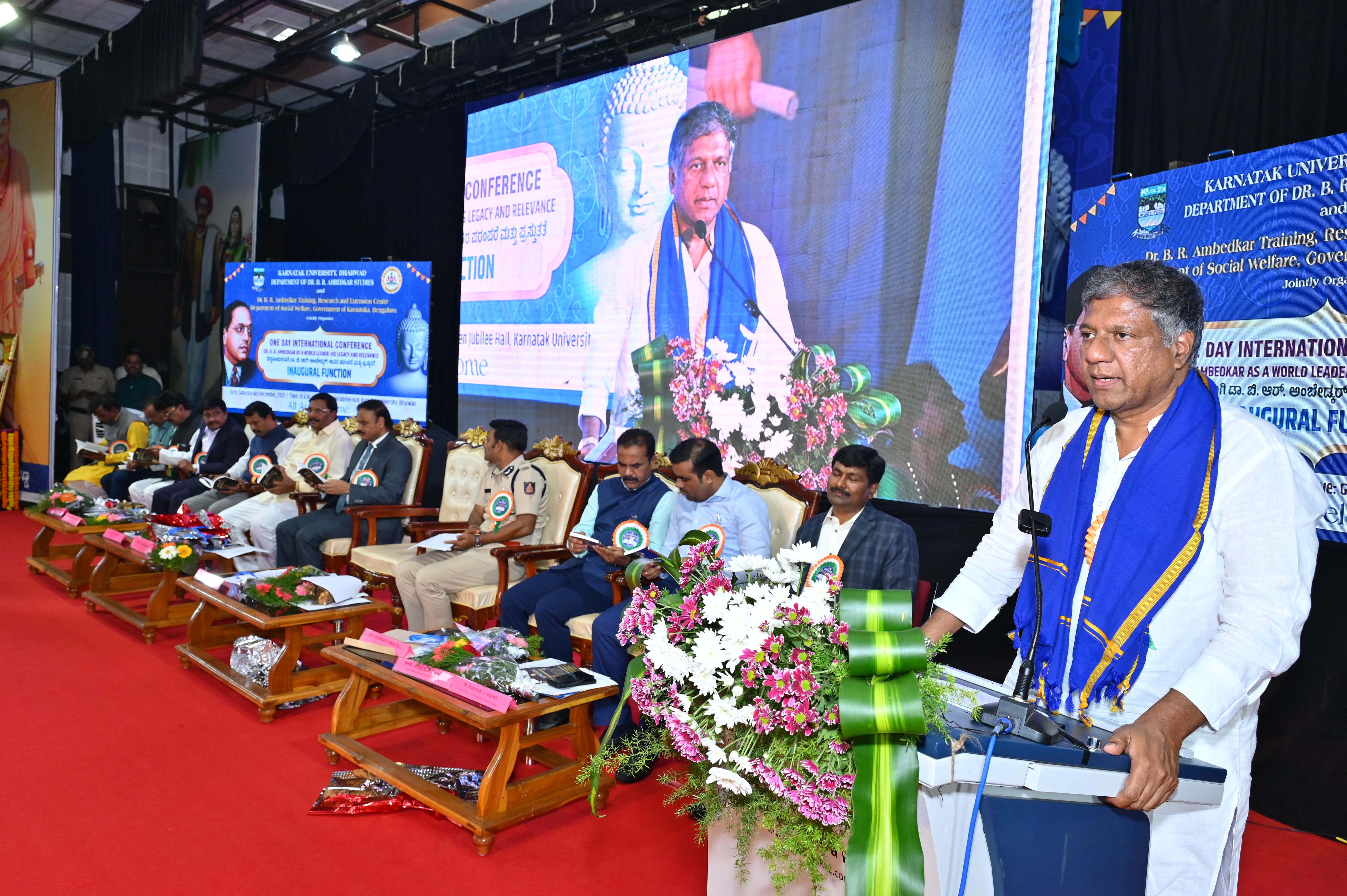 ವಿಪ ಸದಸ್ಯ ಎಫ್.ಎಚ್. ಜಕ್ಕಪ್ಪನವರ ಮಾತನಾಡಿ. ಅಂಬೇಡ್ಕರ್ ಅವರ ಮೌಲ್ಯಗಳನ್ನು ಅನುಸರಿಸುವ ಅವಶ್ಯಕತೆ ಇದೆ. ದಮನಿತ ವರ್ಗದ ನಿಜವಾದ ದೇವರು ಅಂಬೇಡ್ಕರ್ ಆಗಿದ್ದಾರೆ ಎಂದು ಹೇಳಿದರು.ಕಾರ್ಯಕ್ರಮದಲ್ಲಿ ಸಂಶೋಧನಾ ಲೇಖನಗಳ ‘ಪ್ರಜ್ಞಾ’ ಪುಸ್ತಕ ಸಂಶೋಧನಾ ಗ್ರಂಥವನ್ನು ಬಿಡುಗಡೆ ಮಾಡಲಾಯಿತು. ಈ ವೇಳೆ ಪೊಲೀಸ್ ಕಮಿಷನರ್ ಎನ್. ಶಶಿಕುಮಾರ್. ಡಾ. ಸುರೇಶ ಗೌತಮ. ಡಾ. ಸುಭಾಷಚಂದ್ರ ನಾಟೀಕಾರ, ಕವಿವಿ ಕುಲಪತಿಗಳಾಗಿದ್ದ ಪ್ರೊ. ಎ.ಎಂ. ಖಾನ್, ಡಾ. ಶಂಕರ ವಣಿಕ್ಯಾಳ, ಮೌಲ್ಯಮಾಪನ ಕುಲಸಚಿವ ಡಾ. ನಿಜಲಿಂಗಪ್ಪ ಮಟ್ಟಿಹಾಳ, ಹಣಕಾಸು ಅಧಿಕಾರಿ ಪ್ರದೀಪಕುಮಾರ, ಸಿಂಡಿಕೇಟ್ ಸದಸ್ಯ ರಾಬರ್ಟ್ ದದ್ದಪೂರಿ, ಶ್ಯಾಮ ಮಲ್ಲನಗೌಡರ, ಮಹೇಶ ಹುಲ್ಲೆಪ್ಪನವರ, ಡಾ. ರವೀಂದ್ರ ಕಾಂಬಳೆ ಇದ್ದರು.
