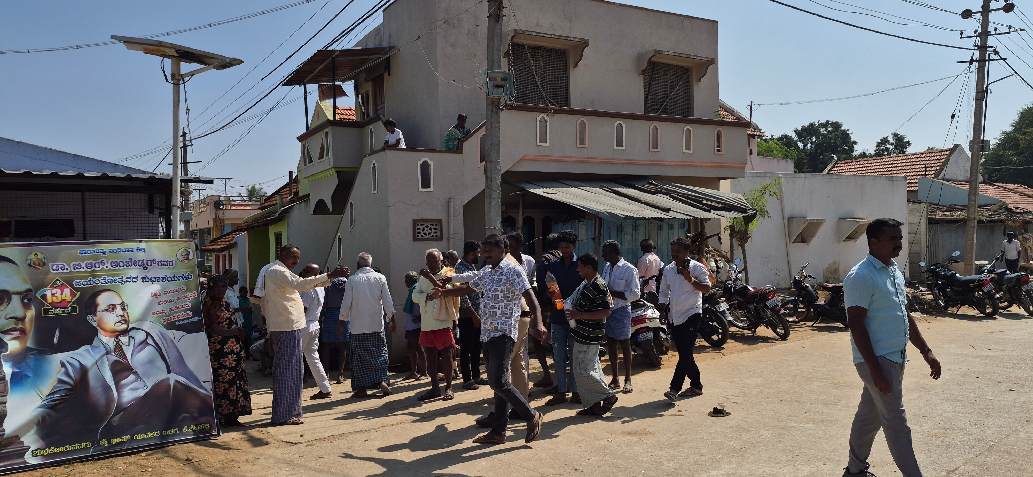 ಗ್ರಾಪಂ ಆಡಳಿತ ಮಂಡಳಿಯ ಅನುಮೋದನೆ ಪಡೆಯದೆ ಅಕ್ರಮವಾಗಿ ಖಾತೆ ಮಾಡಿದ್ದು ಗುಂಡು ಕಟ್ಟೆ ಜಾಗವನ್ನು ಅಕ್ರಮವಾಗಿ ಖಾತೆ ಮಾಡಿಕೊಂಡಿರುವ ಬಗ್ಗೆ ಹಾಗೂ ಖಾತೆ ರದ್ದುಪಡಿಸಿ ಆ ಜಾಗದಲ್ಲಿ ಅಂಬೇಡ್ಕರ್ ಪುತ್ಥಳಿ ನಿರ್ಮಾಣಕ್ಕೆ ಅನುವು ಮಾಡಿಕೊಡಬೇಕೆಂದು ಅಧಿಕಾರಿಗಳಿಗೆ ಮನವಿ ಮಾಡಿದರು.ದಲಿತರ ದೂರಿನ ಬಗ್ಗೆ ಸರ್ವಣೀಯ ಸಮುದಾಯ ಮುಖಂಡರು ಆಕ್ಷೇಪಣೆ ವ್ಯಕ್ತಪಡಿಸಿ, ನಾವು ಗ್ರಾಮದಲ್ಲಿ ಯಾವುದೇ ಜಾತಿ-ಬೇಧಗಳಿಲ್ಲದೆ ಸಾಮರಸ್ಯದಿಂದ ಜೀವನ ನಡೆಸುತ್ತಿದ್ದೇವೆ. ಗ್ರಾಮದಲ್ಲಿ ಇತಿಹಾಸ ಪ್ರಸಿದ್ಧ ಶ್ರೀಬೊಮ್ಮಲಿಂಗೇಶ್ವರ ದೇವಾಲಯವಿದ್ದು, ವರ್ಷಕ್ಕೆ ಸಾವಿರಾರು ಭಕ್ತರು ಕ್ಷೇತ್ರಕ್ಕೆ ಆಗಮಿಸುತ್ತಾರೆ. ಅವರಿಗೆ ಸೂಕ್ತ ಅನುಕೂಲವಾಗುವ ಮೂಲಸೌಕರ್ಯಗಳನ್ನು ಒದಗಿಸುವ ನಿಟ್ಟಿನಲ್ಲಿ ದೇವಸ್ಥಾನದ ಸುತ್ತ ತಂತಿ ಅಳವಡಿಸಿದ್ದೇವೆ ಎಂದರು.