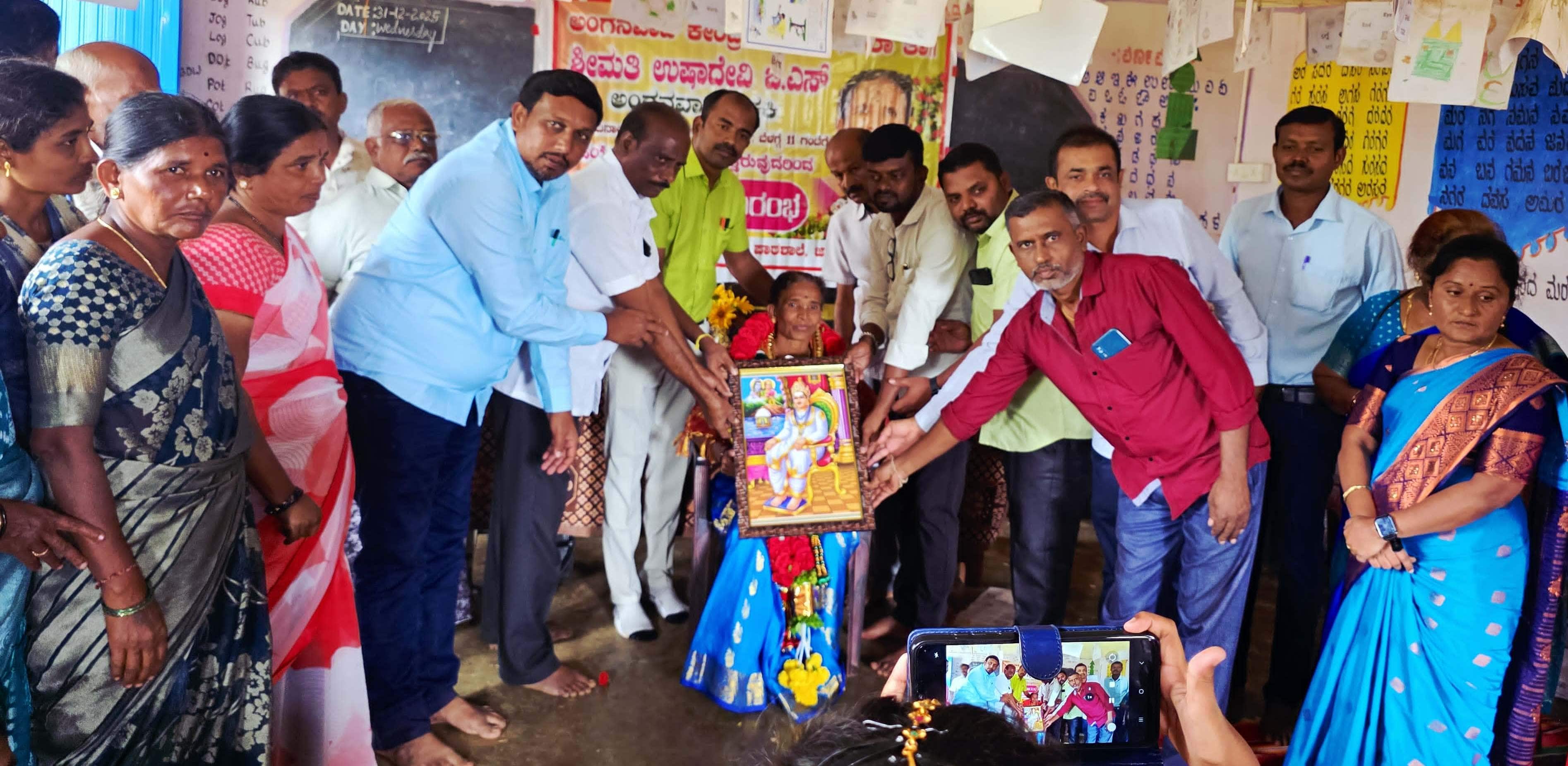 ೩೮ ವರ್ಷಗಳ ಕಾಲ ಅಂಗನವಾಡಿ ಶಿಕ್ಷಕಿಯಾಗಿ ಸೇವೆ ಸಲ್ಲಿಸಿ ವಯೋ ನಿವೃತ್ತಿ ಹೊಂದಿದ ಬಿಎಸ್ ಉಷಾದೇವಿಯವರಿಗೆ ಗ್ರಾಮಸ್ಥರಿಂದ ಬೀಳ್ಕೊಡುಗೆ