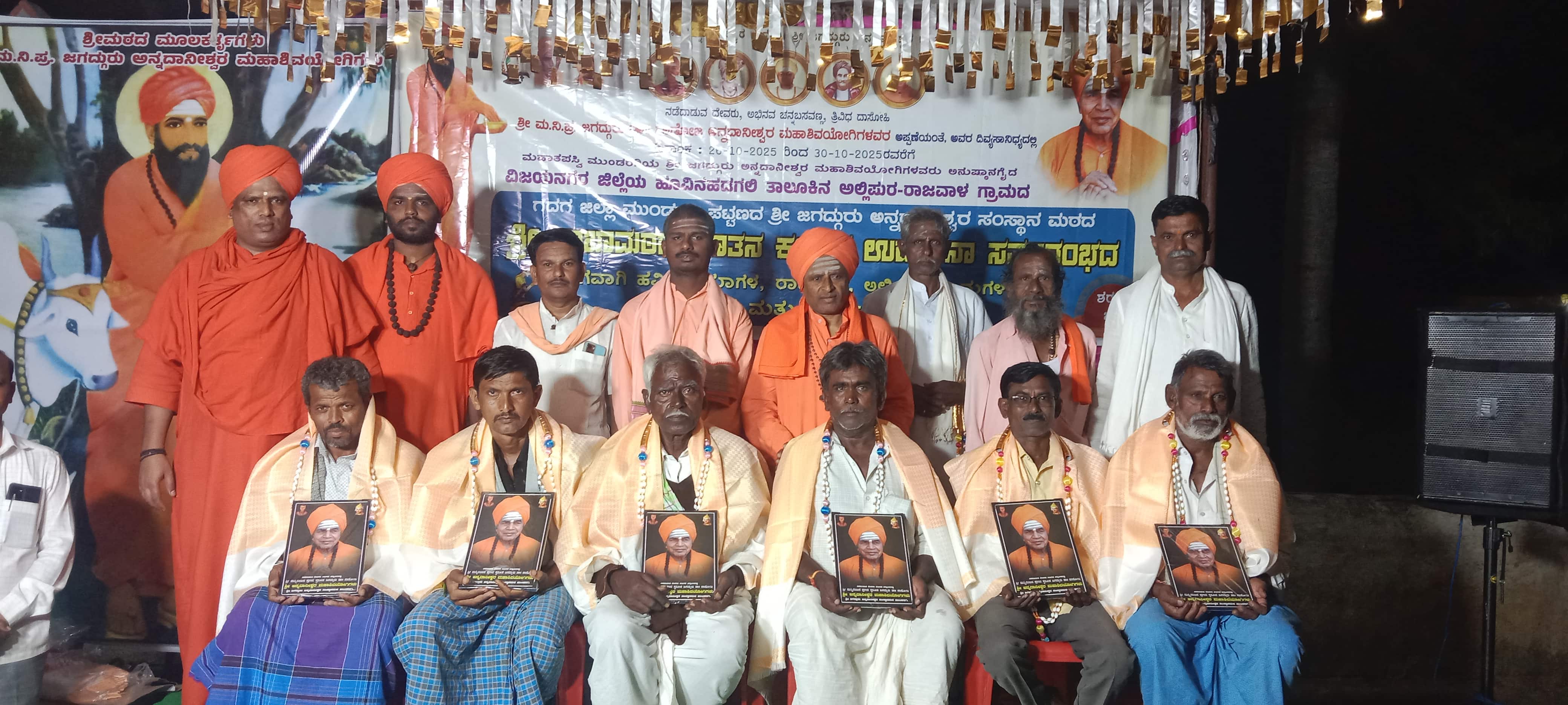 ಹಿರೇಮಲ್ಲನಕೆರೆ ಮಠದ ಅಭಿನವ ಚೆನ್ನಬಸವ ಶ್ರೀ ಪ್ರವಚನ ನೀಡಲಿದ್ದಾರೆ ಎಂದು ಹೇಳಿದರು.ಧರ್ಮಸಭೆಯಲ್ಲಿ ಸೊರಟೂರಿನ ಶಿವಯೋಗೀಶ್ವರ ಶ್ರೀ, ಡಾ.ಮಹಾದೇ...... ಶ್ರೀ, ನಾಗಭೂಷಣ ಶ್ರೀ, ಕುಮಾರಸ್ವಾಮಿ ಶಾಸ್ತ್ರಿ, ತೋಟರ ಮಲ್ಲಿಕಾರ್ಜುನಪ್ಪ, ಗಡಕನಹಳ್ಳಿ ನಾಗಭೂಷಣ, ಯಳಮಾಲಿ ವಿರೂಪಾಕ್ಷಪ್ಪ, ಎಲ್.ಮಂಜುನಾಥ, ಗುಡಿ ಭೂಪಾಲಪ್ಪ ಇದ್ದರು. ಇದೇ ವೇಳೆ ಗ್ರಾಮದ ಗಣ್ಯರನ್ನು ಸನ್ಮಾನಿಸಲಾಯಿತು.