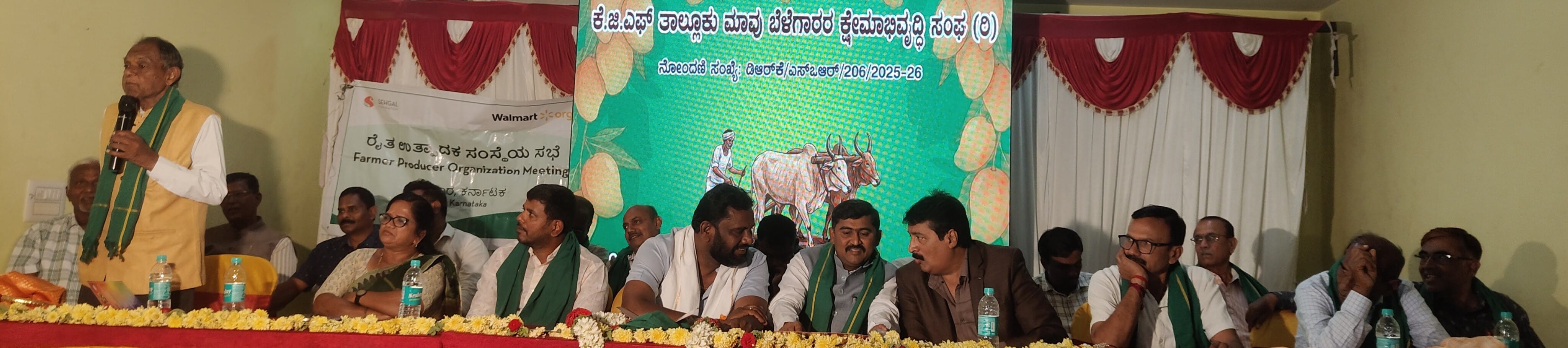 ನಂದಿನಿ ಹಾಲು ಒಕ್ಕೂಟವು ಮಾವಿನ ಹಣ್ಣಿನಿಂದ ಹಲವು ಬಗೆಯ ತಿನಿಸುಗಳನ್ನು ತಯಾರಿಸಿ ನಂದಿನಿ ಮಳಿಗೆಯಲ್ಲಿ ಮಾರಾಟ ಮಾಡುವ ಮೂಲಕ ರೈತರ ಕೈ ಹಿಡಿಯಬೇಕು ಎಂದು ಹೇಳಿದರು.ತಾಲೂಕು ಮಾವು ಬೆಳೆಗಾರರ ಸಂಘದ ನೂತನ ಅಧ್ಯಕ್ಷ ಅಭಿಲಾಷ್ ರೆಡ್ಡಿ ಮಾತನಾಡಿ, ಕೆಜಿಎಫ್ ತಾಲೂಕಿನಲ್ಲಿ ಸರಿ ಸುಮಾರು ೩೦೦೦ ಸಾವಿರ ಕುಟುಂಬಗಳು ಮಾವು ಬೆಳೆಯನ್ನೇ ಆಧಾರ ಮಾಡಿಕೊಂಡಿವೆ. ಕೋಲಾರ ಜಿಲ್ಲೆಯಲ್ಲಿ ೪೦ ಸಾವಿರ ಎಕರೆ ಜಮೀನಿನಲ್ಲಿ ಮಾವು ಬೆಳೆ ಬೆಳೆಯುತ್ತಿದ್ದಾರೆ. ಅವರಿಗೆ ಭದ್ರತೆ ಕಲ್ಪಿಸಬೇಕಿದೆ ಹಾಗೂ ತೋಟಗಾರಿಕೆ ಕಚೇರಿಯನ್ನು ಕೆಜಿಎಫ್ ನಗರದಲ್ಲೂ ತೆರೆಯಬೇಕಿದೆ. ಹಾಗೂ ಮಾವು ಮಂಡಳಿಯ ಶಾಖಾ ಕಚೇರಿ ಕ್ಯಾಸಂಬಳ್ಳಿಯಲ್ಲಿ ತೆರೆಯಬೇಕು ಎಂದು ಹೇಳಿದರು.