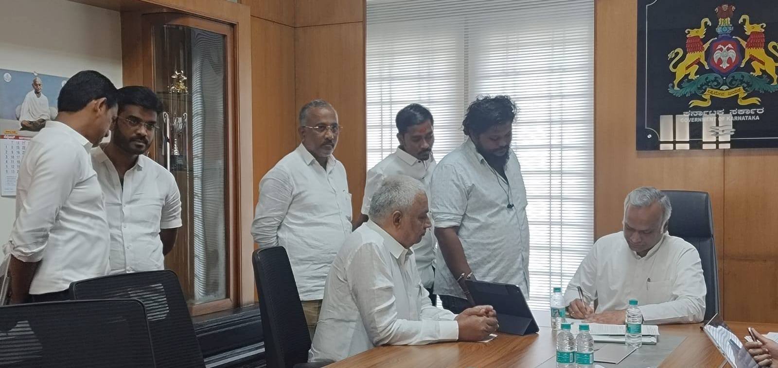 ಭದ್ರಾವತಿ: ತಾಲೂಕಿನ ಗ್ರಾಮೀಣ ಭಾಗದಲ್ಲಿ ರಸ್ತೆ ಅಭಿವೃದ್ಧಿ ಕಾಮಗಾರಿಗಳಿಗೆ ಹಾಗೂ ತಾಲೂಕು ಪಂಚಾಯಿತಿ ಕಟ್ಟಡಕ್ಕೆ ಅನುದಾನ ಬಿಡುಗಡೆಗೊಳಿಸುವಂತೆ ಕರ್ನಾಟಕ ಗ್ರಾಮೀಣ ಮೂಲ ಸೌಕರ್ಯ ಅಭಿವೃದ್ಧಿ ನಿಗಮದ ಅಧ್ಯಕ್ಷರಾದ ಶಾಸಕ ಬಿ.ಕೆ ಸಂಗಮೇಶ್ವರ್ ಗ್ರಾಮೀಣಾಭಿವೃದ್ಧಿ ಹಾಗೂ ಪಂಚಾಯತ್ ರಾಜ್ ಇಲಾಖೆ ಸಚಿವ ಪ್ರಿಯಾಂಕ್ ಖರ್ಗೆಯವರಿಗೆ ಮನವಿ ಸಲ್ಲಿಸಿದ್ದಾರೆ. ಬೆಂಗಳೂರಿನಲ್ಲಿ ಸಚಿವರನ್ನು ಭೇಟಿ ಮಾಡಿದ ಶಾಸಕರು, ಪ್ರಸ್ತುತ ತಾಲೂಕು ಪಂಚಾಯಿತಿ ಕಟ್ಟಡ ತುಂಬಾ ಹಳೆಯದಾಗಿದ್ದು, ಈ ಕಟ್ಟಡ ನವೀಕರಣಗೊಳಿಸುವುದು ಸಹ ಕಷ್ಟಕರವಾಗಿದೆ. ಈ ಹಿನ್ನಲೆಯಲ್ಲಿ ನೂತನ ಕಟ್ಟಡ ನಿರ್ಮಾಣಕ್ಕೆ ಅನುದಾನ ಮಂಜೂರಾತಿ ಮಾಡುವಂತೆ ಶಾಸಕರು ಕೋರಿದ್ದಾರೆ. ತಾಲೂಕಿನ ಗ್ರಾಮ ಪಂಚಾಯಿತಿಗಳ ವ್ಯಾಪ್ತಿಯಲ್ಲಿ ಬಹಳಷ್ಟು ರಸ್ತೆಗಳು ಹಾಳಾಗಿದ್ದು, ಗ್ರಾಮಗಳಲ್ಲಿ ಗುಣಮಟ್ಟದ ರಸ್ತೆಗಳು ನಿರ್ಮಾಣಗೊಂಡಲ್ಲಿ ಭವಿಷ್ಯದಲ್ಲಿ ಗ್ರಾಮಗಳ ಸರ್ವತೋಮುಖ ಅಭಿವೃದ್ಧಿಗೆ ರಸ್ತೆಗಳು ಸಹಕಾರಿಯಾಗಲಿವೆ. ಈ ಹಿನ್ನಲೆಯಲ್ಲಿ ರಸ್ತೆಗಳ ಅಭಿವೃದ್ಧಿಗೆ ಅನುದಾನ ಬಿಡುಗಡೆಗೊಳಿಸುವಂತೆ ಮನವಿ ಮಾಡಿದ್ದಾರೆ.