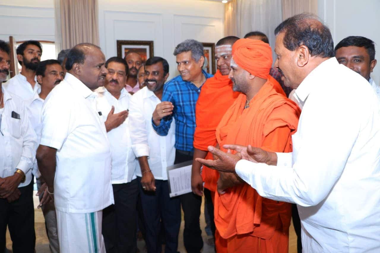 ಕೇಂದ್ರ ಭಾರೀ ಕೈಗಾರಿಕೆ ಹಾಗೂ ಉಕ್ಕು ಸಚಿವರುಪೋಟೊ 7 : ಸೋಂಪುರ ಹೋಬಳಿಯಲ್ಲಿ ಭೂಸ್ವಾಧೀನಪಡಿಸಿಕೊಂಡಿರುವ ಜಮೀನುಗಳಿಗೆ ಶೀಘ್ರವಾಗಿ ಪರಿಹಾರ ನೀಡುವಂತೆ ಕೇಂದ್ರ ಭಾರೀ ಕೈಗಾರಿಕೆ ಹಾಗೂ ಉಕ್ಕು ಸಚಿವ ಹೆಚ್.ಡಿ.ಕುಮಾರಸ್ವಾಮಿ ಅವರಿಗೆ ಪರಮಪೂಜ್ಯರು, ರೈತರು ಮನವಿ ಸಲ್ಲಿಸಿದರು.