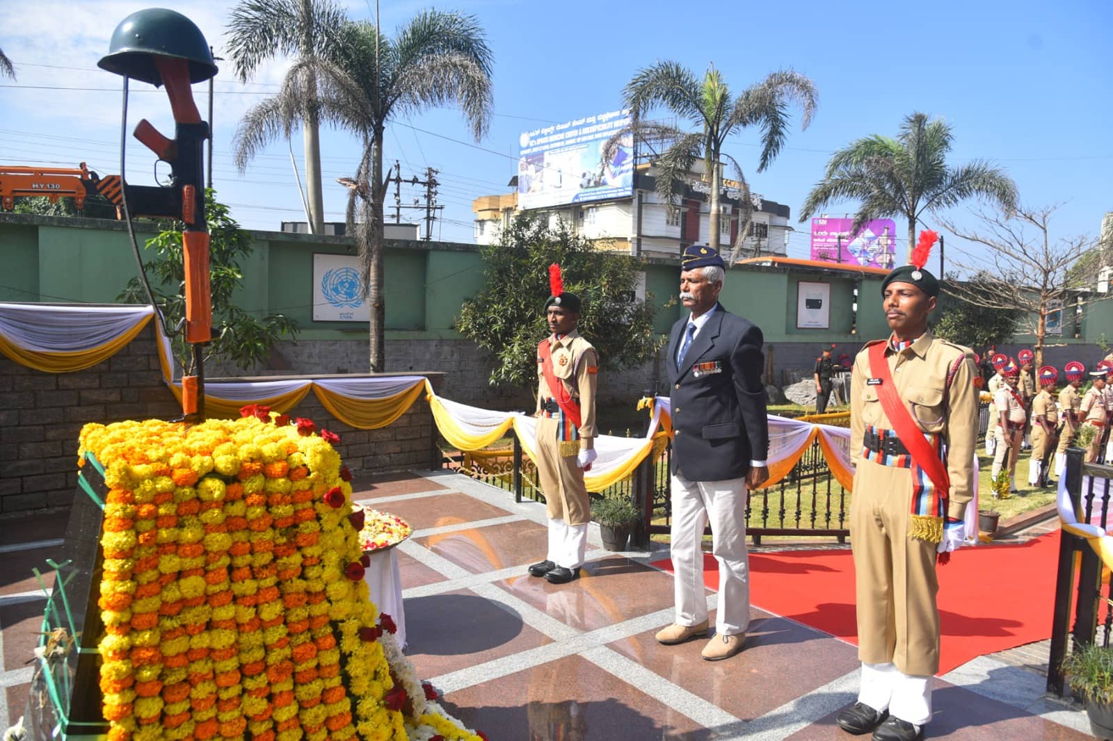 ಕರ್ತವ್ಯ ಪಾಲನೆ ಸಂದರ್ಭದಲ್ಲಿ ವೀರ ಮರಣವನ್ನಪ್ಪಿದ ಯೋಧರ ಸ್ಮರಣಾರ್ಥ ಎರಡು ನಿಮಿಷಗಳ ಕಾಲ ಮೌನಾಚರಿಸಲಾಯಿತು. ಪೊಲೀಸ್ ತಂಡದವರು ಮೂರು ಸುತ್ತು ಕುಶಾಲತೋಪು ಹಾರಿಸಿ ಗೌರವ ವಂದನೆ ಸಲ್ಲಿಸಿದರು. ಮೇ.ಜ. ಕೆ.ಸಿ.ಕಾರ್ಯಪ್ಪ(ನಿ) ಅವರು ಸಶಸ್ತ್ರ ಪಡೆಗಳ ಧ್ವಜ ಬಿಡುಗಡೆ ಮಾಡಿದರು.ಪೊಲೀಸ್ ಇಲಾಖೆಯ ಎಆರ್ಎಸ್ಐ ತಂಡದ ಚೆನ್ನಕೇಶವ ಮತ್ತು ಪೊಲೀಸರು ಗೌರವ ವಂದನೆ ನಡೆಸಿಕೊಟ್ಟರು. ಹಾಗೆಯೇ ಪೊಲೀಸ್ ಬ್ಯಾಂಡ್ ತಂಡದವರು ಪೊಲೀಸ್ ವಾದ್ಯದೊಂದಿಗೆ ಗೌರವ ನಮನ ಸಲ್ಲಿಸಿದರು. ಮಾಜಿ ಸೈನಿಕರು, ಪೊಲೀಸರು, ಎನ್ಸಿಸಿ ವಿದ್ಯಾರ್ಥಿಗಳು, ಇತರರು ಗೌರವ ಸಲ್ಲಿಸಿದರು