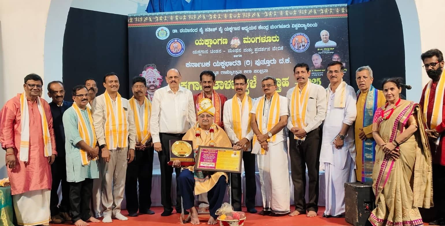 ಮಂಗಳೂರು: ಅನೇಕ ಕಲಾಪ್ರಕಾರಗಳ ನಡುವೆ ಯಕ್ಷಗಾನ ಸರ್ವಾಂಗೀಣ ಕಲೆ ಹಾಗೂ ನಮ್ಮ ಸಂಸ್ಕೃತಿ ಪ್ರತಿನಿಧಿಸುವ ಕಲೆಯಾಗಿ ಗುರುತಿಸಿದೆ. ಕರಾವಳಿಯ ಭಾಷೆ ಸಂಸ್ಕೃತಿ, ಭಾವ ಯಕ್ಷಗಾನದಲ್ಲಿ ಪ್ರಕಟವಾಗುತ್ತವೆ. ಕಲಾವಿದರು ಕಲೆಯ ಆತ್ಮವಾದರೆ ಕಲಾಪೋಷಕರು ಕಲೆಯ ಹೃದಯವಿದ್ದಂತೆ ಎಂದು ಮಂಗಳೂರು ವಿ.ವಿ. ಕುಲಸಚಿವ ಕೆ.ರಾಜು ಮೊಗವೀರ ಹೇಳಿದ್ದಾರೆ.ಮಂಗಳೂರು ವಿವಿ ಕಾಲೇಜಿನಲ್ಲಿ ಯಕ್ಷಾಂಗಣ ಮಂಗಳೂರು, ಮಂಗಳೂರು ವಿ.ವಿ.ಯ ಡಾ.ಪಿ.ದಯಾನಂದ ಪೈ ಮತ್ತು ಶ್ರೀ ಪಿ.ಸತೀಶ್ ಪೈ ಯಕ್ಷಗಾನ ಅಧ್ಯಯನ ಕೇಂದ್ರ, ಹಾಗೂ ಕರ್ನಾಟಕ ಯಕ್ಷಭಾರತಿ ಪುತ್ತೂರು ವತಿಯಿಂದ ನಡೆಯಲಿರುವ ಯಕ್ಷಗಾನ ತಾಳಮದ್ದಳೆ ಸಪ್ತಾಹ - 2025 ಕಾರ್ಯಕ್ರಮವನ್ನು ಭಾನುವಾರ ಉದ್ಘಾಟಿಸಿ ಅವರು ಮಾತನಾಡಿದರು.