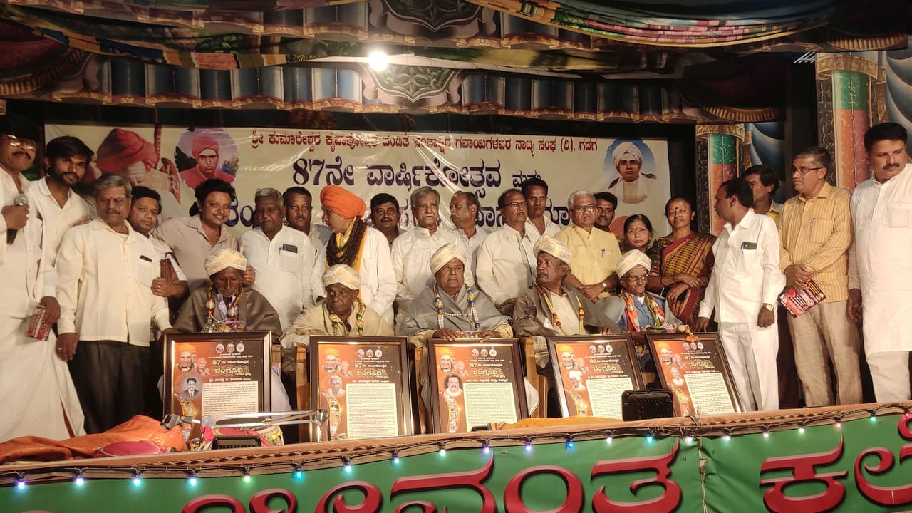 ಗದುಗಿನ ವೀರೇಶ್ವರ ಪುಣ್ಯಾಶ್ರಮದ ಡಾ. ಕಲ್ಲಯ್ಯಜ್ಜನವರು ಮಾತನಾಡಿ, ಇದೊಂದು ಸಂಗೀತ ಸಂಗಮ. ಹಿಂದೂ ಮುಸ್ಲಿಂ ಭಾವೈಕ್ಯತೆಯ ಅನೇಕ ನಾಟಕಗಳು ಜನಮನ ಸೂರೆಗೊಂಡಿವೆ. ನಮ್ಮ ಪುಣ್ಯಾಶ್ರಮಕ್ಕೆ ಯಾವುದೇ ಜಾತಿಯಿಲ್ಲ. ಆಶ್ರಮಕ್ಕೆ ಬಂದವರಿಗೆಲ್ಲ ಒಂದೇ ತೆರನಾದ ಊಟವಿರುತ್ತದೆ. ಹೀಗಾಗಿ ನಮ್ಮ ಸಂಘದಲ್ಲಿಯೂ ಕಲಾವಿದರಾಗಲೂ ಯಾವ ಜಾತಿ ಮತದ ಬೇಧವಿಲ್ಲ ಎಂದರು.ಈ ಸಂದರ್ಭದಲ್ಲಿ ಹಿರಿಯ ಕಲಾವಿದರಾದ ಆಂಧ್ರ ಪ್ರದೇಶದ ಮರಿಸ್ವಾಮಿ ಮದರಿ, ಅಡ್ನೂರಿನ ಕಲ್ಲಿನಾಥ ಶಾಸ್ತ್ರೀ, ಪು.ಬಡ್ನಿಯ ರಾಚಯ್ಯಸ್ವಾಮಿ ಹಿರೇಮಠ, ಕಟಗಿಹಳ್ಳಿಯ ಹುಚ್ಚಯ್ಯಸ್ವಾಮಿ ಕಲ್ಮಠ ಹಾಗೂ ಕೌಜಗೇರಿಯ ಈರಪ್ಪ ಹೂಗಾರ ಅವರಿಗೆ ರಂಗಸಿರಿ ಪ್ರಶಸ್ತಿ ಪ್ರದಾನ ಮಾಡಲಾಯಿತು.