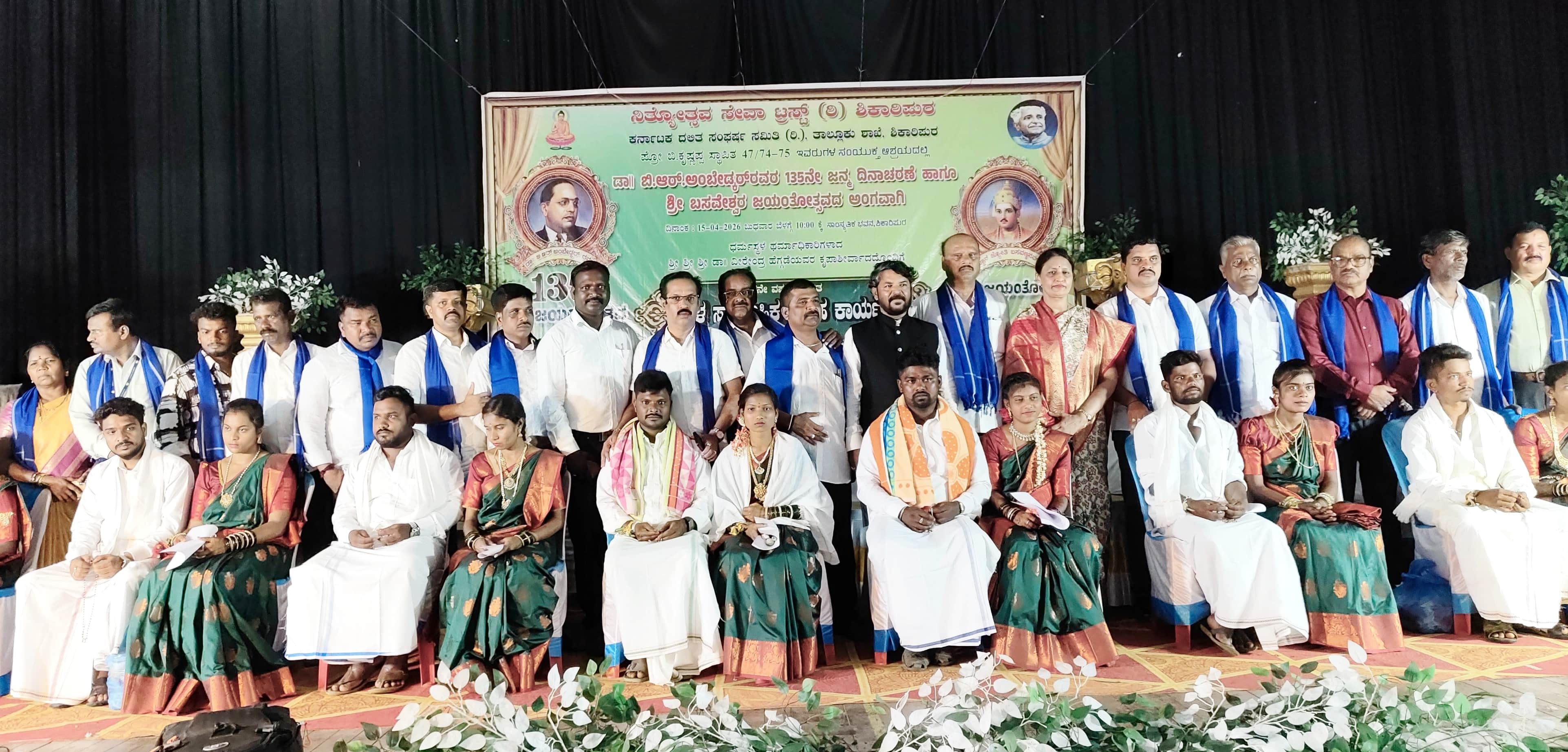 ಪಟ್ಟಣದ ಸಾಂಸ್ಕೃತಿಕ ಭವನದಲ್ಲಿ ನಿತ್ಯೋತ್ಸವ ಸೇವಾ ಟ್ರಸ್ಟ್ ಹಾಗೂ ಕರ್ನಾಟಕ ದಲಿತ ಸಂಘರ್ಷ ಸಮಿತಿ ರಿ.(ಪ್ರೊ.ಬಿ.ಕೃಷ್ಣಪ್ಪ ಸ್ಥಾಪಿತ) ತಾ.ಶಾಖೆ ವತಿಯಿಂದ ಡಾ.ಬಿ.ಆರ್.ಅಂಬೇಡ್ಕರ್ 135ನೇ ಜನ್ಮ ದಿನಾಚರಣೆ ಹಾಗೂ ಶ್ರೀ ಬಸವೇಶ್ವರ ಜಯಂತಿ ಅಂಗವಾಗಿ ಹಮ್ಮಿಕೊಳ್ಳಲಾಗಿದ್ದ 7ನೇ ವರ್ಷದ ಸರಳ ಸಾಮೂಹಿಕ ಮಂತ್ರ ಮಾಂಗಲ್ಯ ವಿವಾಹ ಕಾರ್ಯಕ್ರಮದಲ್ಲಿ ಭಾಗವಹಿಸಿ ಮಾತನಾಡಿದರು,.ಆಡಂಬರದ ಮದುವೆಗಳ ಕಾಲದಲ್ಲಿ ಬಡ ಹಾಗೂ ಮಧ್ಯಮ ವರ್ಗದ ಕುಟುಂಬಗಳಿಗೆ ಆಸರೆಯಾಗುವ ನಿಟ್ಟಿನಲ್ಲಿ ಸರಳ ಸಾಮೂಹಿಕ ವಿವಾಹ ಆಯೋಜನೆ ಸಂತೋಷದ ಸಂಗತಿಯಾಗಿದ್ದು,ಪ್ರೊ.ಬಿ.ಕೃಷ್ಣಪ್ಪ ಹಾಕಿಕೊಟ್ಟ ದಾರಿಯಲ್ಲಿ ಸಮಾಜದ ಏಳಿಗೆಗಾಗಿ ಈ ಸೇವಾ ಕಾರ್ಯಗಳು ನಿರಂತರವಾಗಿ ಮುಂದುವರಿಯಲಿ ಎಂದು ಹಾರೈಸಿದರು.