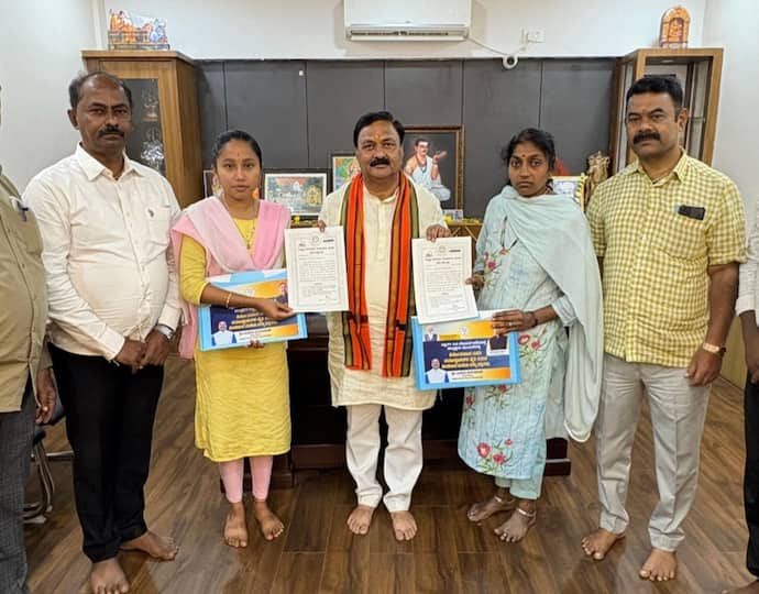 ಬಿಹಾರ ಮೂಲದ ದುರುಳನಿಂದ ಅತ್ಯಾಚಾರಕ್ಕೆ ಒಳಗಾಗಿ ಹತ್ಯೆಯಾಗಿದ್ದ ಬಾಲಕಿ ಹಾಗೂ ಪಿಯು ಕಲಾವಿಭಾಗದಲ್ಲಿ ರಾಜ್ಯಕ್ಕೆ 5ನೇ ರ್ಯಾಂಕ್ ಪಡೆದ ನಾಗವೇಣಿ ರಾಯಚೂರ ಕುಟುಂಬಕ್ಕೂ ಶಾಸಕ ಮಹೇಶ ಟೆಂಗಿನಕಾಯಿ ಕೊಟ್ಟ ಮಾತಿನಂತೆ ಮನೆ ವಿತರಿಸಿದ್ದಾರೆ.