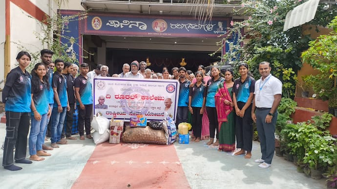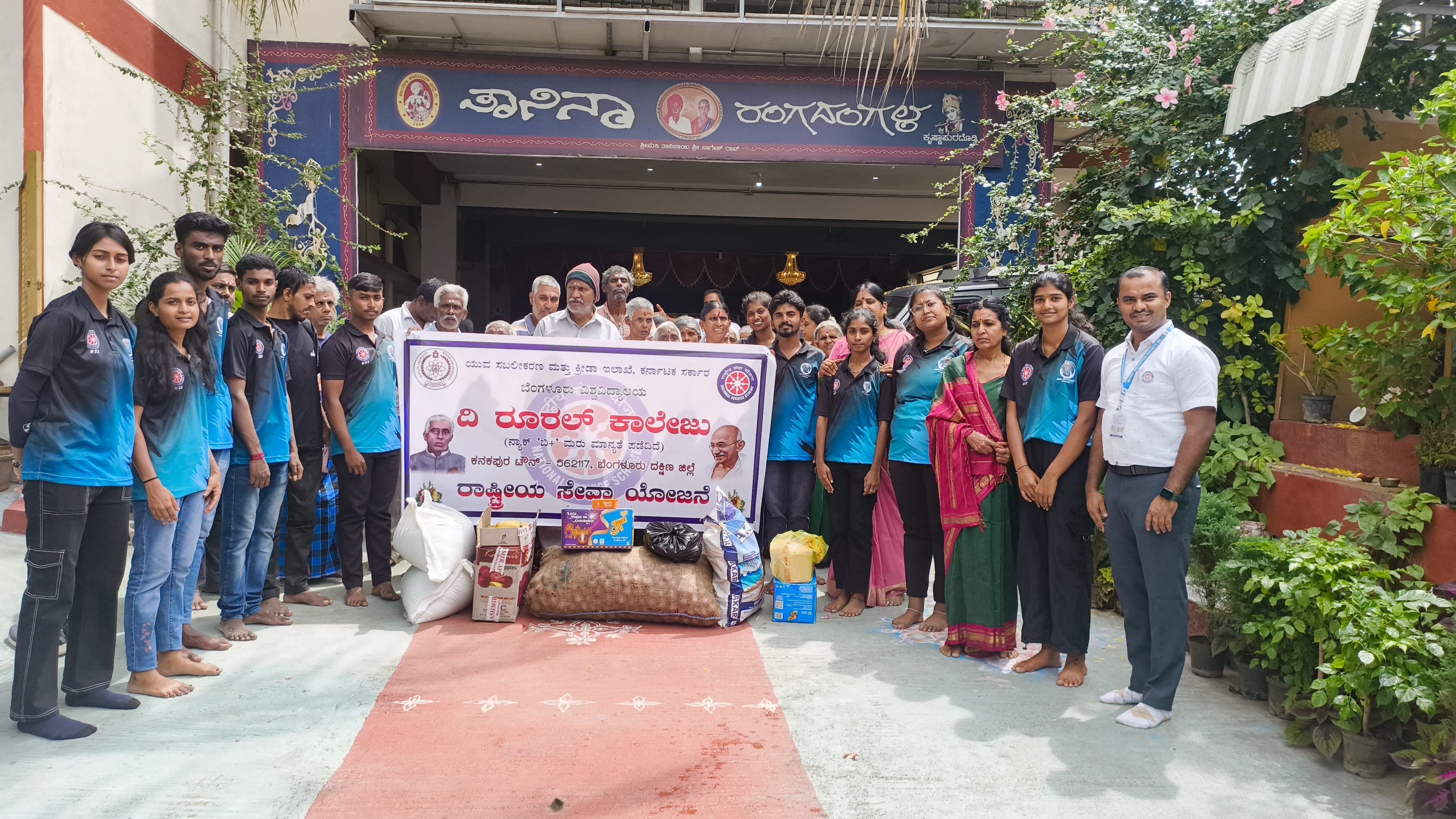 ಕನಕಪುರ: ನಗರದ ಪ್ರತಿಷ್ಠಿತ ವಿದ್ಯಾಸಂಸ್ಥೆ ರೂರಲ್ ಪದವಿ ಕಾಲೇಜಿನ ರಾಷ್ಟ್ರೀಯ ಸೇವಾ ಯೋಜನೆಯ ವತಿಯಿಂದ ಸ್ವಯಂ ಸೇವಕರು ರಾಷ್ಟ್ರಪಿತ ಮಹಾತ್ಮ ಗಾಂಧೀಜಿ ಜಯಂತಿ ಅಂಗವಾಗಿ ಗುರುವಾರ ರಾಮನಗರದ ದಾರಿ ದೀಪ ವೃದ್ಧಾಶ್ರಮಕ್ಕೆ ಭೇಟಿ ನೀಡಿ ದಿನಸಿ ಸಾಮಗ್ರಿ ವಿತರಿಸಿದರು.
