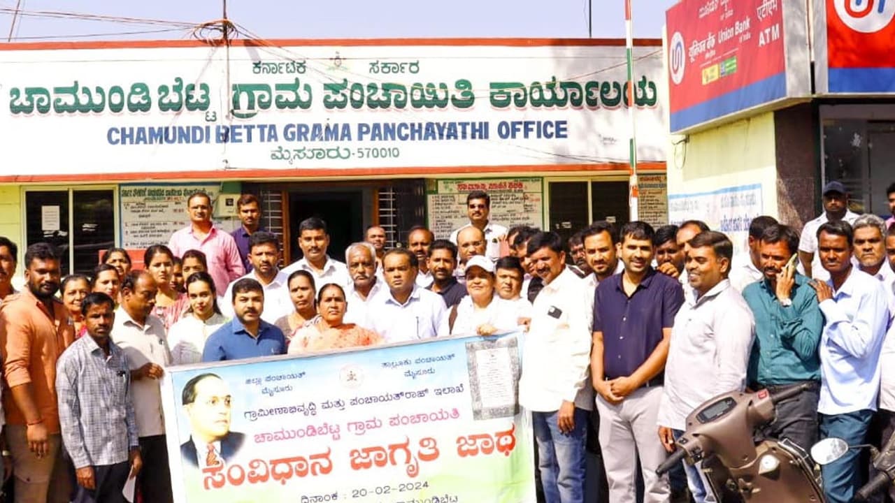 ಮೈಸೂರು ತಾಲೂಕು ಪಂಚಾಯತ್ ವತಿಯಿಂದ ಚಾಮುಂಡಿಬೆಟ್ಟದಲ್ಲಿ ಸಂವಿಧಾನ ಜಾಗೃತಿ ಜಾಥಾವನ್ನು ನಡೆಸುವ ಮೂಲಕ ಸಂವಿಧಾನದ ಆಶಯ ಕುರಿತು ಪ್ರವಾಸಿಗರು ಹಾಗೂ ಭಕ್ತಾಧಿಗಳಿಗೆ ಅರಿವು ಮೂಡಿಸಲಾಯಿತು.ಈ ವೇಳೆ ತಾಪಂ ಕಾರ್ಯನಿರ್ವಾಹಕ ಅಧಿಕಾರಿ ಎಂ.ಎಸ್. ಗಿರಿಧರ್, ಸಹಾಯಕ ನಿರ್ದೇಶಕ ಡಿ.ಸಿ. ಶಿವಣ್ಣ, ಪಿಡಿಒಗಳು, ಕಾರ್ಯದರ್ಶಿಗಳು, ಎಸ್ ಡಿಎಎ, ಡಿಇಒ ಹಾಗೂ ಬಿಲ್ ಕಲೆಕ್ಟರ್ ಗಳವರು ಮತ್ತು ಶಾಲಾ ಮಕ್ಕಳೆಲ್ಲರೂ ಭಾಗವಹಿಸಿ, ಸಂವಿಧಾನ ಪ್ರಸ್ತಾವನೆಯನ್ನು ಓದುವ ಮೂಲಕ ಸಂವಿಧಾನದ ಆಶಯಕ್ಕೆ ಬದ್ಧರಾಗಿರುತ್ತೇವೆ ಎಂದು ಪ್ರತಿಜ್ಞೆ ಸ್ವೀಕರಿಸಿದರು.