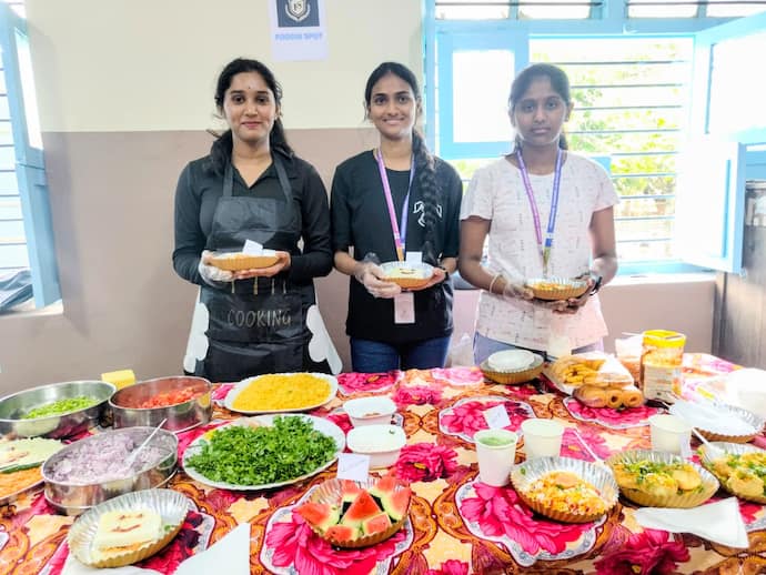 ಅಲ್ಲಿ ವಾಣಿಜ್ಯ ವಿಭಾಗದ ವಿದ್ಯಾರ್ಥಿಗಳು ಖಾದ್ಯಗಳ ಬಾಣಸಿಗರಾಗಿ ಬದಲಾಗಿದ್ದರು. ಬೆಂಕಿರಹಿತ ಖಾದ್ಯಗಳ ತಯಾರಿಕೆಯಲ್ಲಿ ಮಗ್ನರಾಗಿದ್ದ ವಿದ್ಯಾರ್ಥಿಗಳು, ತಾವೇ ತಯಾರಿಸಿದ ಪಾನಿಪೂರಿ, ಸ್ಯಾಂಡ್ವಿಚ್, ಹಣ್ಣಿನ ರಸಾಯನ, ಚಾಕಲೇಟ್, ಪೌಷ್ಟಿಕ ನ್ಯೂಡಲ್ಸ್, ವಿವಿಧ ಬಗೆಯ ಪಾನೀಯಗಳು, ಕಾಳು, ಖಾರ್ನ್ ಮತ್ತು ವಿವಿಧ ಧಾನ್ಯಗಳಿಂದ ಕೂಡಿದ ಖಾದ್ಯಗಳು ಆಹಾರ ಪ್ರಿಯರ ಮನಃಗೆದ್ದಿತು.ನಗರದ ಆಚಾರ್ಯ ತುಳಸಿ ರಾಷ್ಟ್ರೀಯ ವಾಣಿಜ್ಯ ಕಾಲೇಜಿನಲ್ಲಿ ಸ್ಪಂದನ ಮಹಿಳಾ ವಿಭಾಗದ ಸಹಯೋಗದಲ್ಲಿ ಶನಿವಾರ ಏರ್ಪಡಿಸಿದ್ದ ನಿರ್ವಹಣೆ, ಸಾಂಸ್ಕೃತಿಕ ಮತ್ತು ಆಹಾರ ಮೇಳ ಸ್ಪರ್ಧೆಯು ಇಂತಹ ದೃಶ್ಯಕ್ಕೆ ಸಾಕ್ಷಿಯಾಗಿತ್ತು.
