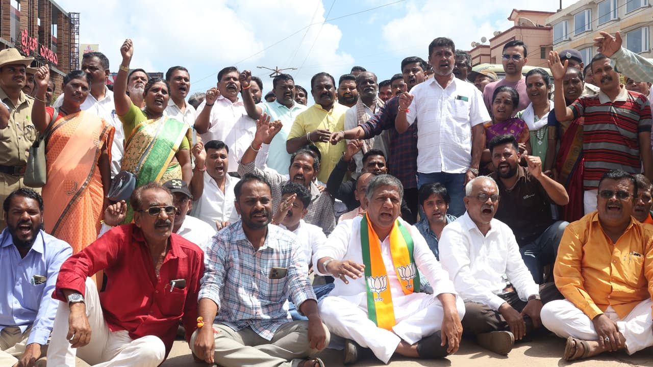 ಕಪ್ಪು ಬಟ್ಟೆ ಪ್ರದರ್ಶನಈ ನಡುವೆ ಪ್ರತಿಭಟನೆ ಎರಡು ತಂಡದಲ್ಲಿ ನಡೆಸಿ ಇಬ್ಬರು ಶಾಸಕರು ಹಾಗೂ ಮುಖಂಡರೆಲ್ಲರೂ ಅರೆಸ್ಟ್ ಆದರೂ ಇಬ್ಬರು ಬಿಜೆಪಿ ಕಾರ್ಯಕರ್ತರು ಸಿಎಂ ಸಿದ್ದರಾಮಯ್ಯ ಅವರಿಗೆ ಕಪ್ಪು ಬಟ್ಟೆ ತೋರಿಸುವಲ್ಲಿ ಯಶಸ್ವಿಯಾದರು. ಜಗದೀಶ ಕಂಬಳಿ ಹಾಗೂ ಮಂಜುನಾಥ ಕಲಾಲ ಎಂಬ ಕಾರ್ಯಕರ್ತರು ಪ್ರತಿಭಟನೆಯಲ್ಲಿ ಪಾಲ್ಗೊಳ್ಳದೇ ಸಿಎಂ ವಾಹನ ಬರುವ ಮಾರ್ಗ ಮಧ್ಯೆ ನಿಂತಿದ್ದರು. ವಿಮಾನ ನಿಲ್ದಾಣದಿಂದ ಸಿಎಂ ವಾಹನ ಹೋಗುತ್ತಿದ್ದಂತೆ ರಸ್ತೆ ಬದಿಯಲ್ಲಿ ನಿಂತು ಕಪ್ಪು ಬಟ್ಟೆ ತೋರಿಸಿದರು.ಕಾಂಗ್ರೆಸ್ನಿಂದ ತುಷ್ಟೀಕರಣ ರಾಜಕೀಯ: ಮಾಜಿ ಸಿಎಂ ಬೊಮ್ಮಾಯಿ