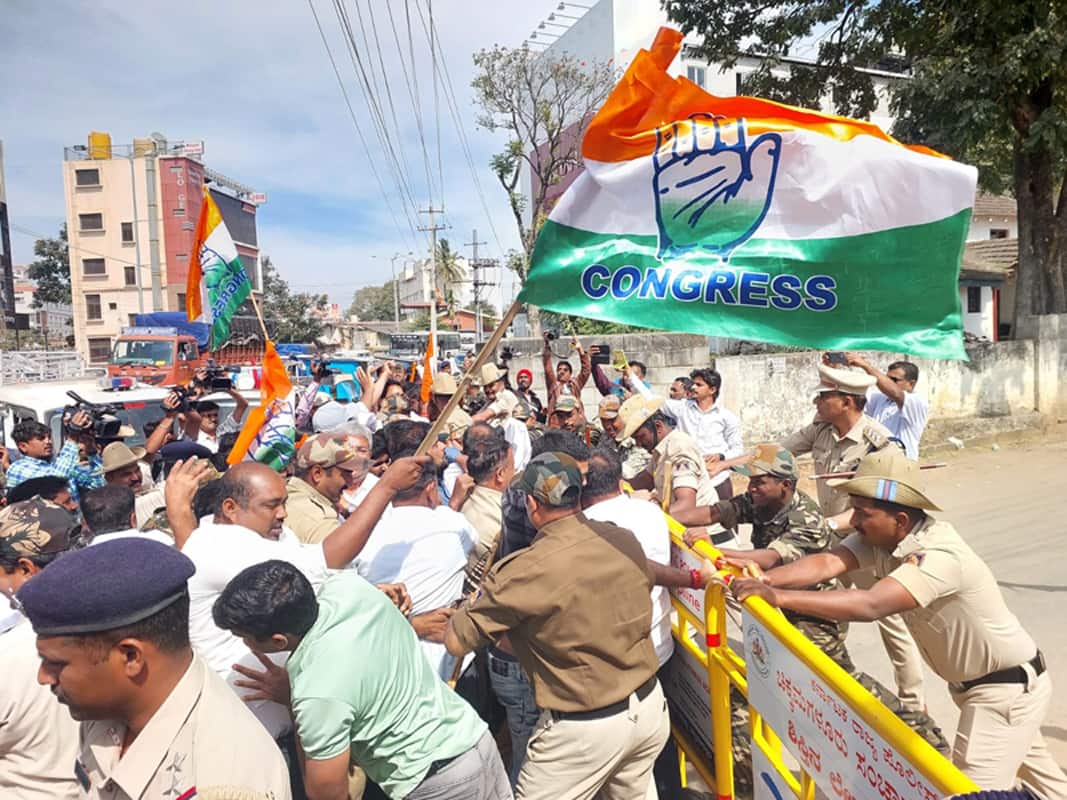 ಕಾಂಗ್ರೆಸ್ ಕಾರ್ಯಕರ್ತರು ತಮ್ಮ ಪಕ್ಷದ ಕಚೇರಿಗೆ ಮುತ್ತಿಗೆ ಹಾಕುತ್ತಾರೆ ಎಂಬುದನ್ನು ಅರಿತಿದ್ದ ಬಿಜೆಪಿ ಕಾರ್ಯಕರ್ತರು ಪಕ್ಷದ ಬಾವುಟದೊಂದಿಗೆ ಕಾಂಗ್ರೆಸ್ ವಿರುದ್ಧ ಘೋಷಣೆ ಕೂಗಿ ಪ್ರತಿರೋಧ ವ್ಯಕ್ತಪಡಿಸಿ ನಂತರ ಹಿಂದಿರುಗಿದರು.ಬಿಜೆಪಿ ಕಚೇರಿ ಮುತ್ತಿಗೆಗೂ ಮುನ್ನ ಕಾಂಗ್ರೆಸ್ ಜಿಲ್ಲಾಧ್ಯಕ್ಷ ಡಾ.ಅಂಶುಮಂತ್ ಕಾರ್ಯಕರ್ತರನ್ನುದ್ದೇಶಿಸಿ ಮಾತನಾಡಿ, ಬಿಜೆಪಿ ಕಳೆದ 12 ವರ್ಷದಲ್ಲಿ ದಬ್ಬಾಳಿಕೆ ರಾಜಕಾರಣ ನಡೆಸುತ್ತಿದೆ. ಇಡಿ, ಸಿಬಿಐ ನಂತಹ ಸ್ವಾಯುತ್ತ ಸಂಸ್ಥೆಗಳನ್ನು ದುರ್ಬಳಕೆ ಮಾಡಿ ಕೊಂಡು ವಿರೋಧ ಪಕ್ಷದ ದನಿ ಕುಗ್ಗಿಸುವ ಕೆಲಸಕ್ಕೆ ಮುಂದಾಗಿರುವುದನ್ನು ಕಾಂಗ್ರೆಸ್ ಖಂಡಿಸುತ್ತದೆ ಎಂದರು.ನ್ಯಾಷನಲ್ ಹೆರಾಲ್ಡ್ ಪ್ರಕರಣದಲ್ಲಿ ಸೋನಿಯಾ ಮತ್ತು ರಾಹುಲ್ ವಿರುದ್ಧ ಹಾಕಿದ್ದ ಕೇಸನ್ನು ನ್ಯಾಯಾಲಯ ವಜಾಗೊಳಿಸುವ ಮೂಲಕ ಬಿಜೆಪಿಗೆ ಛೀಮಾರಿ ಹಾಕಿದೆ ಎಂದು ಹೇಳಿದರು.ಎಐಸಿಸಿ ಕಾರ್ಯದರ್ಶಿ ಬಿ.ಎಂ.ಸಂದೀಪ್ ಮಾತನಾಡಿ, ಸಂವಿಧಾನ ಮತ್ತು ಪ್ರಜಾಪ್ರಭುತ್ವ ವಿರೋಧಿ ನಡೆ ಬಿಜೆಪಿಯಿಂದ ನಡೆಯುತ್ತಿದೆ. ಕಾಂಗ್ರೆಸ್ ವಿರುದ್ಧ ಆಧಾರವಿಲ್ಲದ ಆರೋಪವನ್ನು 2014 ರಿಂದೀಚೆಗೆ ಬಿಜೆಪಿ ಮಾಡುತ್ತಿದೆ. ಸ್ವಾತಂತ್ರ್ಯ ಚಳವಳಿ ಗಟ್ಟಿಗೊಳಿಸಲು 1919 ರಲ್ಲಿ ಯಂಗ್ ಇಂಡಿಯಾ ಸಂಸ್ಥೆಯನ್ನು ಗಾಂಧೀಜಿ ಹುಟ್ಟು ಹಾಕಿದರು ಎಂದು ಹೇಳಿದರು.1938ರಲ್ಲಿ ಎಜಿಎಲ್ ಸಂಸ್ಥೆಯಿಂದ ನ್ಯಾಷನಲ್ ಹೆರಾಲ್ಡ್ ಪತ್ರಿಕೆ ಉದಯವಾಯಿತು. ಈ ಪತ್ರಿಕೆ ಸ್ವಾತಂತ್ರ್ಯ ಸಂಗ್ರಾಮದಲ್ಲಿ ಪ್ರಮುಖ ಪಾತ್ರ ವಹಿಸಿತ್ತು. ಬ್ರಿಟೀಷರ ಗುಲಾಮರಾಗಿದ್ದ ಅಂದಿನ ಬಿಜೆಪಿ ಮತ್ತು ಆರ್ಎಸ್ಎಸ್ ನಾಯಕರು ಆರ್ಗನೈಸರ್ ಪತ್ರಿಕೆಯಲ್ಲಿ ಏನೆಲ್ಲ ಬರೆದಿದ್ದಾರೆ ಎಂಬುದು ಎಲ್ಲರಿಗೂ ಗೊತ್ತಿದೆ ಎಂದು ಟೀಕಾ ಪ್ರಹಾರ ನಡೆಸಿದರು.ಪ್ರತಿಭಟನೆಯಲ್ಲಿ ಕಾಂಗ್ರೆಸ್ ಮುಖಂಡ ಡಾ. ಡಿ.ಎಲ್. ವಿಜಯ್ಕುಮಾರ್, ರೇಖಾ ಹುಲಿಯಪ್ಪಗೌಡ, ಸಿಡಿಎ ಅಧ್ಯಕ್ಷ ನಯಾಜ್ ಅಹ್ಮದ್, ಬ್ಲಾಕ್ ಕಾಂಗ್ರೆಸ್ ಅಧ್ಯಕ್ಷ ಎಚ್.ಪಿ.ಮಂಜೇಗೌಡ, ಜಿಲ್ಲಾ ಕಾರ್ಯದರ್ಶಿ ಹಿರೇಮಗಳೂರು ರಾಮಚಂದ್ರ, ಮಲ್ಲೇಶ್, ಎನ್.ಡಿ. ಚಂದ್ರಪ್ಪ, ಎಂ.ಸಿ ಶಿವಾನಂದಸ್ವಾಮಿ, ಹುಣಸೇಮಕ್ಕಿ ಲಕ್ಷ್ಮಣ್, ಪ್ರಕಾಶ್ ರೈ, ನಗರಸಭೆ ಸದಸ್ಯರಾದ ಲಕ್ಷ್ಮಣ್, ಶಾದಬ್ ಅಲಂಖಾನ್, ಪ್ರಸಾದ್ ಅಮೀನ್, ನಗರಾಧ್ಯಕ್ಷ ತನೂಜ್ ನಾಯ್ಡು, ಕೆ.ಭರತ್ ಪಾಲ್ಗೊಂಡಿದ್ದರು.
