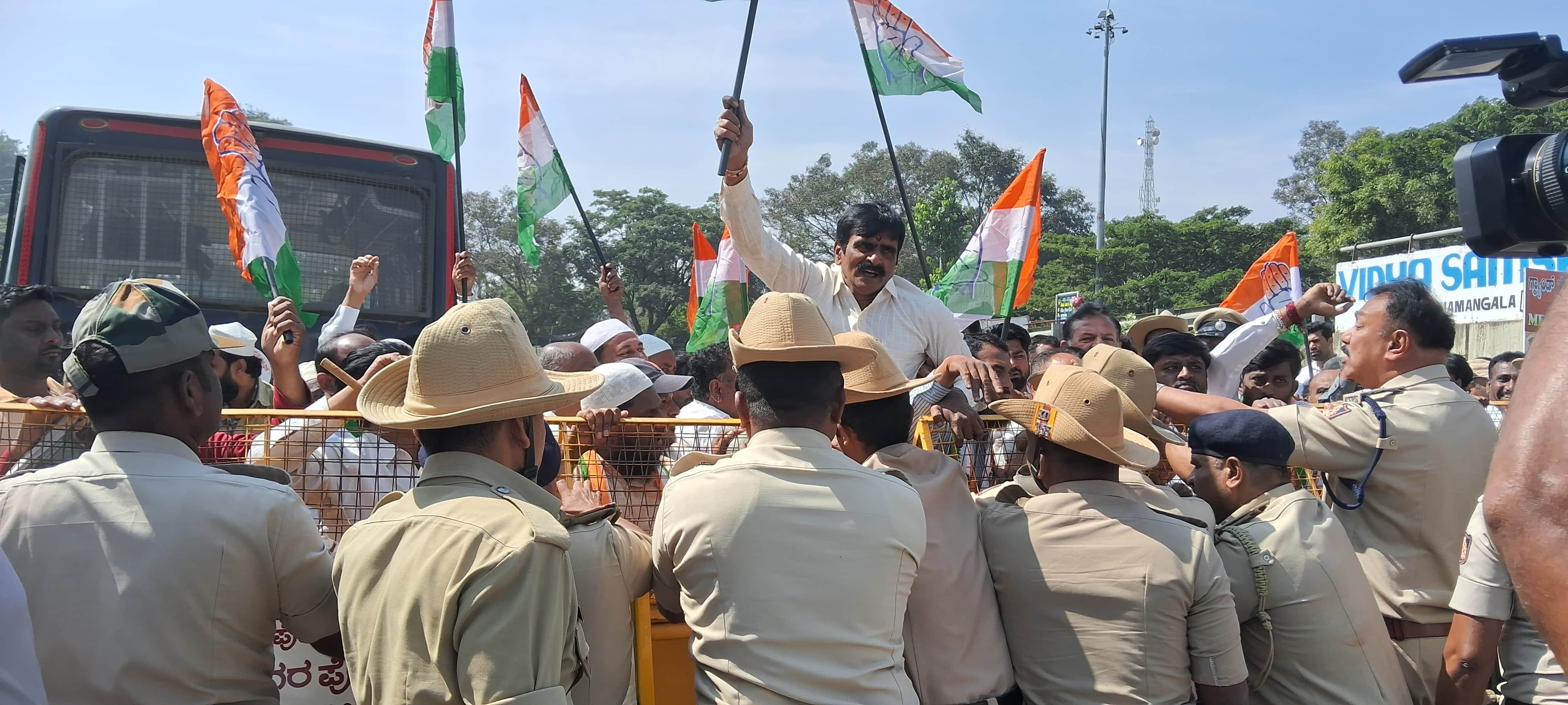 ಕಾಂಗ್ರೆಸ್ ಪಕ್ಷದವರು ಬಿಜೆಪಿ ಪಕ್ಷಕ್ಕೆ ಮುತ್ತಿಗೆ ಹಾಕಲಿದ್ದಾರೆ ಎಂಬ ಮಾಹಿತಿ ದೊರೆತು ಬಿಜೆಪಿ ಅಧ್ಯಕ್ಷ ಓಂಶಕ್ತಿ ಚಲಪತಿ ನೇತೃತ್ವದಲ್ಲಿ ನೂರಾರು ಮಂದಿ ಬಿಜೆಪಿ ಕಾರ್ಯಕರ್ತರು ಸಂಘಟಿತರಾಗಿ ಕಾಂಗ್ರೆಸ್ ಕಾರ್ಯಕರ್ತರು ಬಿಜೆಪಿ ಕಚೇರಿ ಪ್ರವೇಶಿಸುವುದನ್ನು ದೂರದಿಂದಲೇ ತಡೆಯಲೂ ಸಕಲ ರೀತಿಯಲ್ಲೂ ಸಿದ್ದತೆ ಮಾಡಿಕೊಂಡಿದ್ದರು. ವಿಷಯ ಎಸ್ಪಿ ನಿಖಿಲ್.ಬಿ ಗಮನಕ್ಕೆ ಬಂದು ಹೆಚ್ಚುವರಿ ಜಿಲ್ಲಾ ಪೊಲೀಸ್ ವರಿಷ್ಟಾಧಿಕಾರಿ ಶಿವಕುಮಾರ್ ಡಿ.ವೈ.ಎಸ್.ಪಿ ಹೆಚ್.ಎಂ.ನಾಗ್ತೆ, ಸಿಪಿಐ. ಲೋಕೇಶ್ ಹಾಗೂ ಕಾಂತರಾಜ್ ನೇತೃತ್ವದಲ್ಲಿ ಬಿಗಿಪೊಲೀಸ್ ಬಂದೋಬಸ್ತ್ ಆಯೋಜಿಸಿದ್ದು ಮಾರ್ಗದ ಮಧ್ಯೆ ಕಾಂಗ್ರೆಸ್ ಪಕ್ಷದವರನ್ನು ತಡೆ ಹಿಡಿದ ಹಿನ್ನಲೆಯಲ್ಲಿ ಉಂಟಾಗಬಹುದಾದ ದೊಡ್ಡ ಅನಾಹುತ ತಪ್ಪಿಸಿದರು.